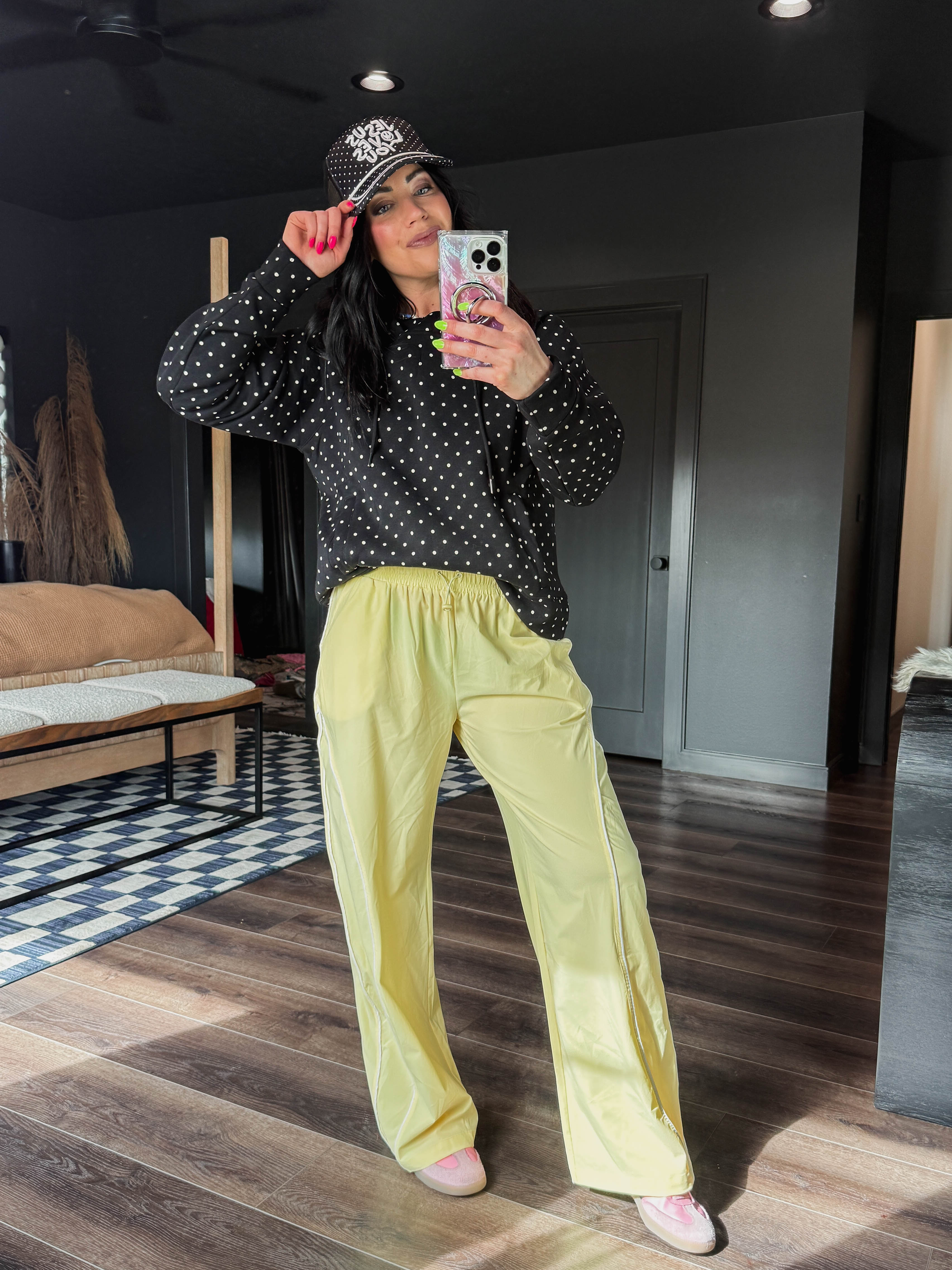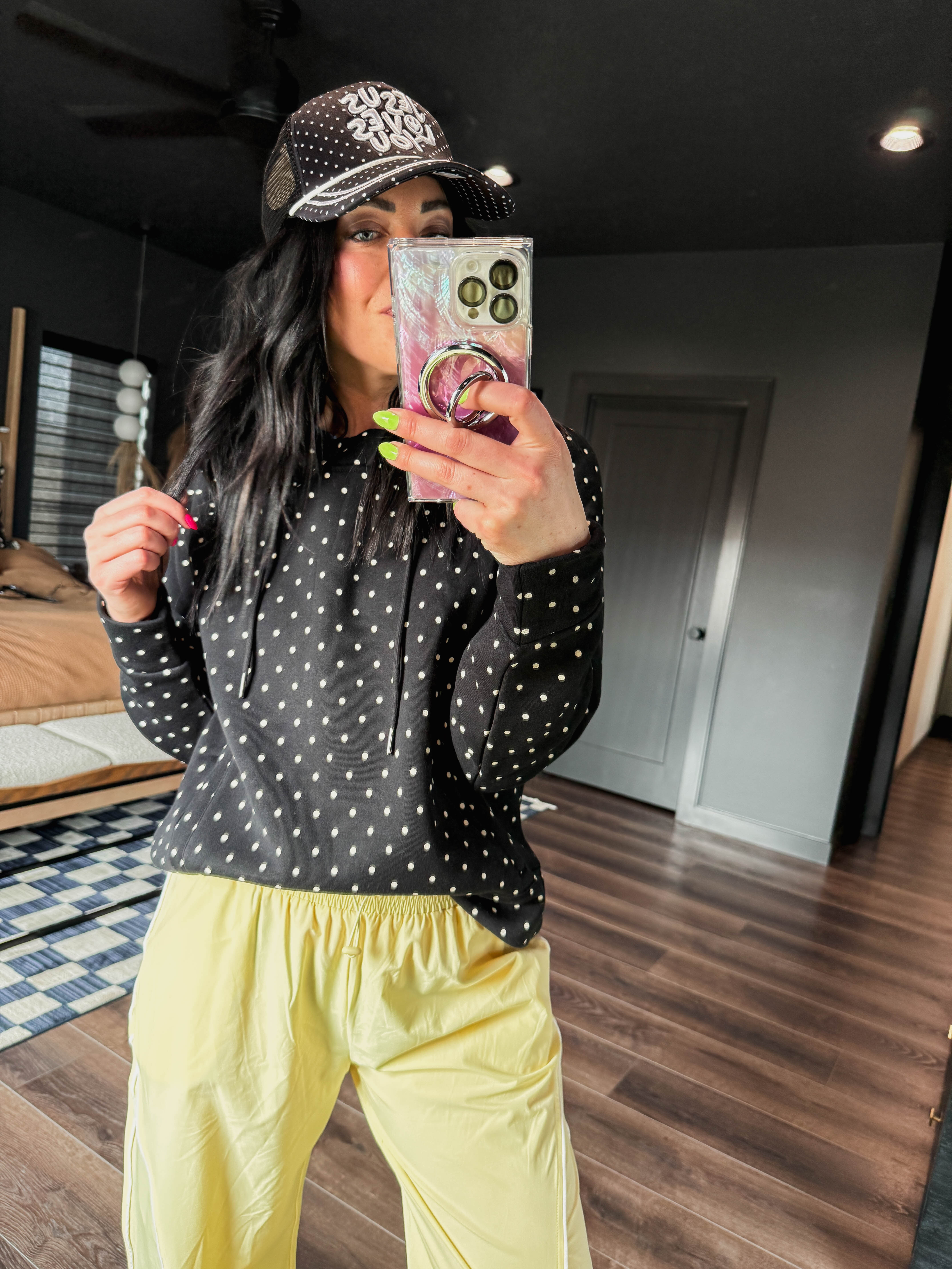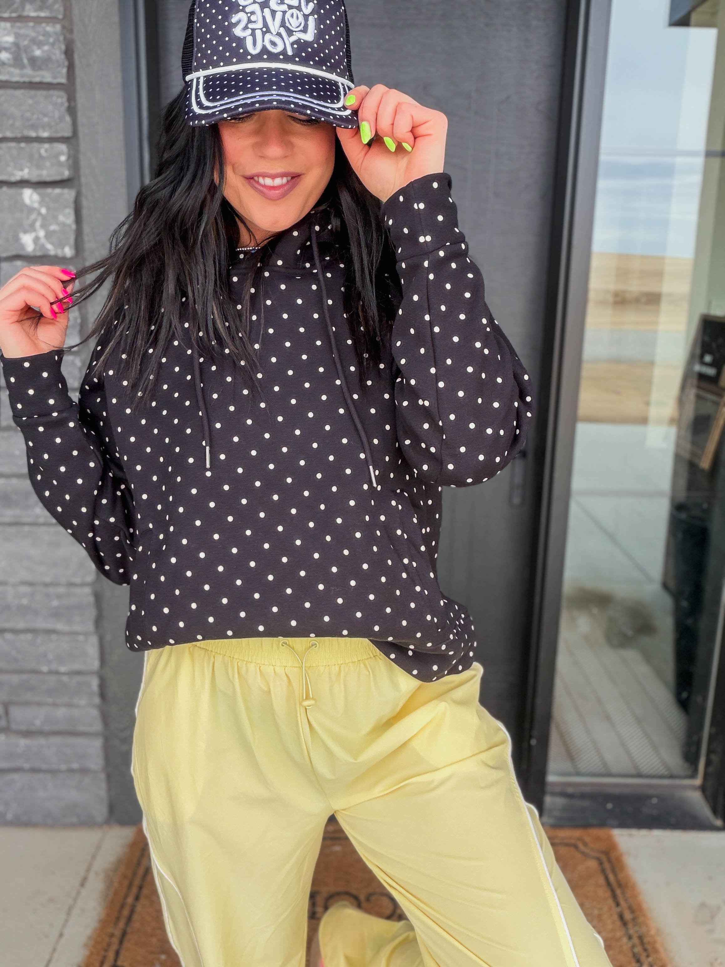 Cozy up in the Chill Spot Hoodie, perfect for relaxed lounge days and casual comfort. The soft fabric keeps you warm while the playful polka dot pattern brings cheerful style to your downtime wardrobe. Designed with a matching pants set available separately, you can create a coordinated lounge look that feels put-together even when you're staying home.