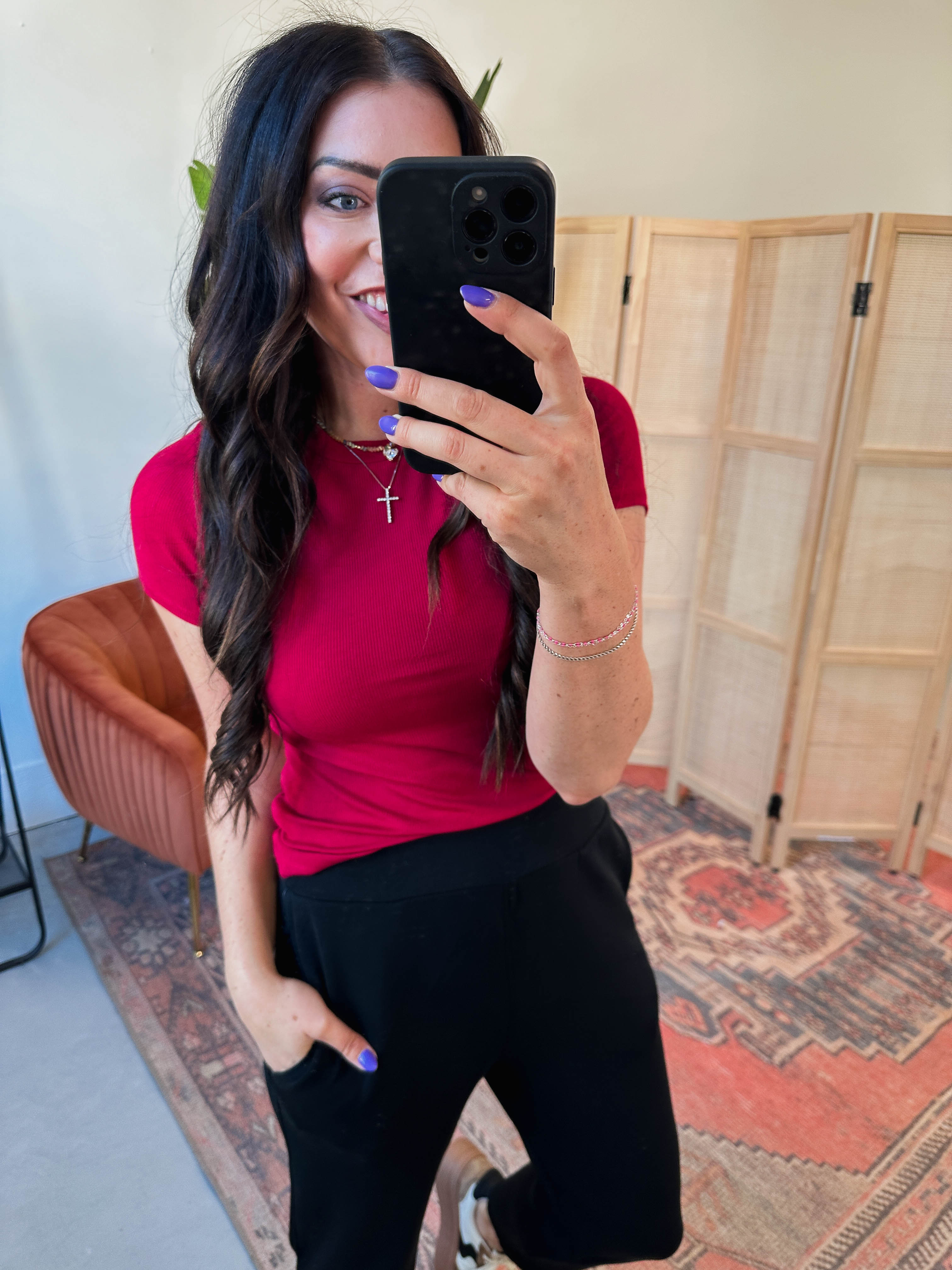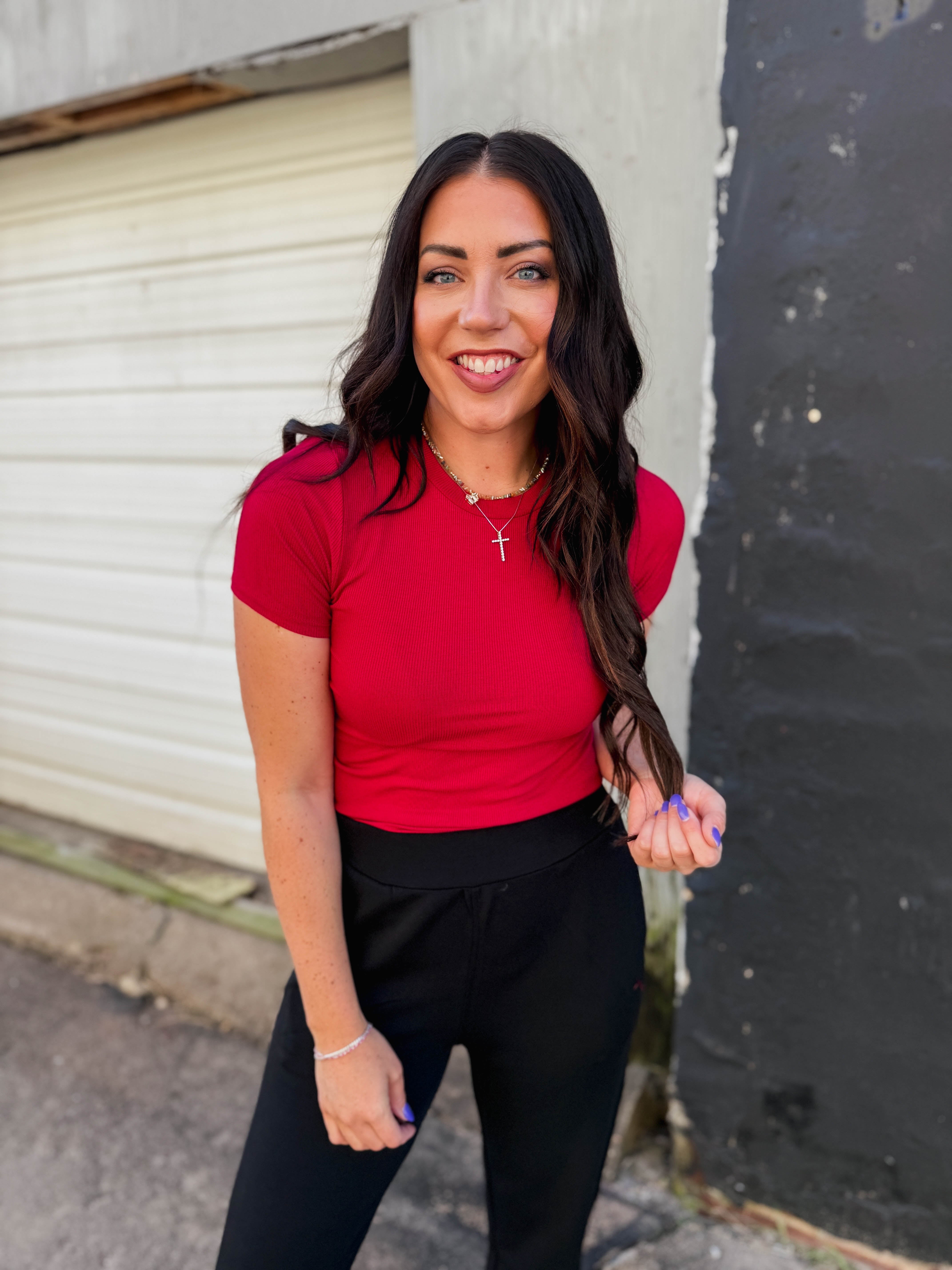 Essential Ribbed Tee-Garnet Red
