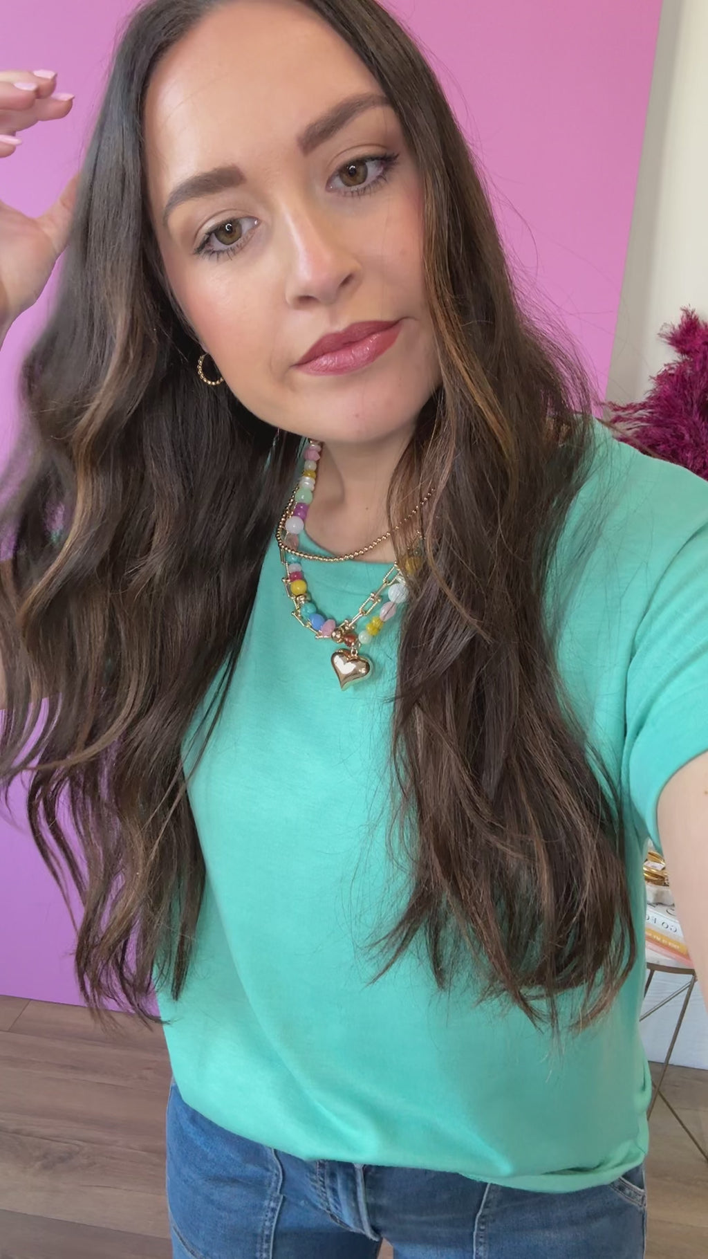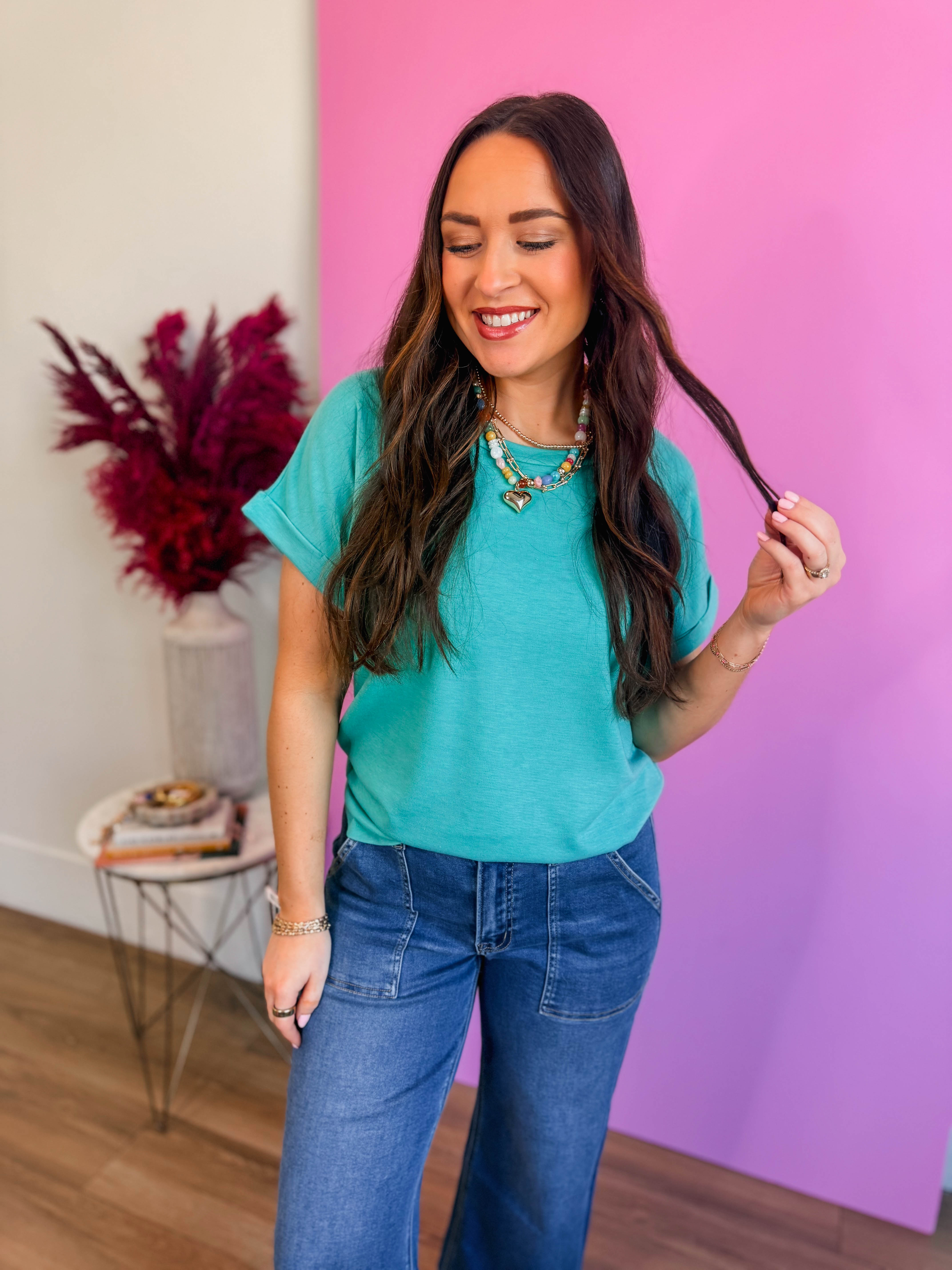 Effortless style that goes everywhere. This cozy terry tee features a relaxed fit and extended short sleeves perfect for layering or wearing solo. Round neckline, solid construction—your new go-to for work, weekend, and everything in between. Simple, comfortable, ready for anything.