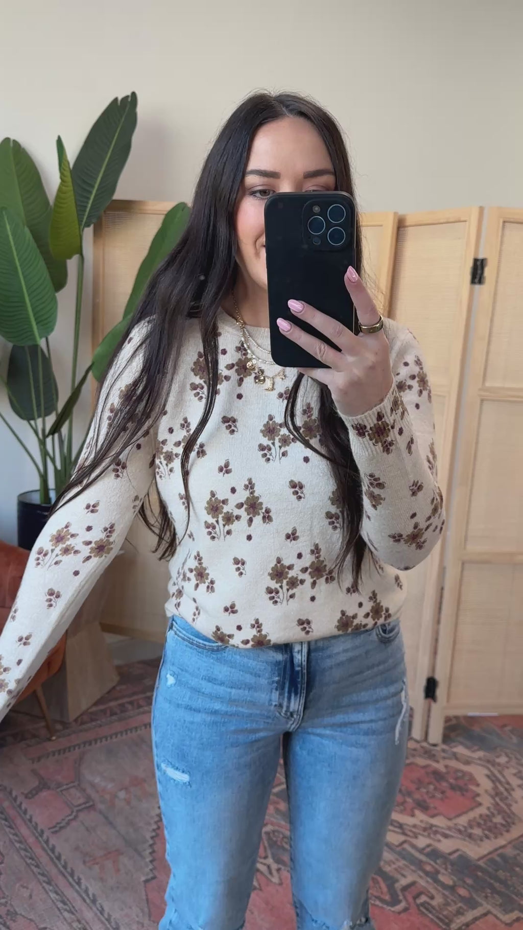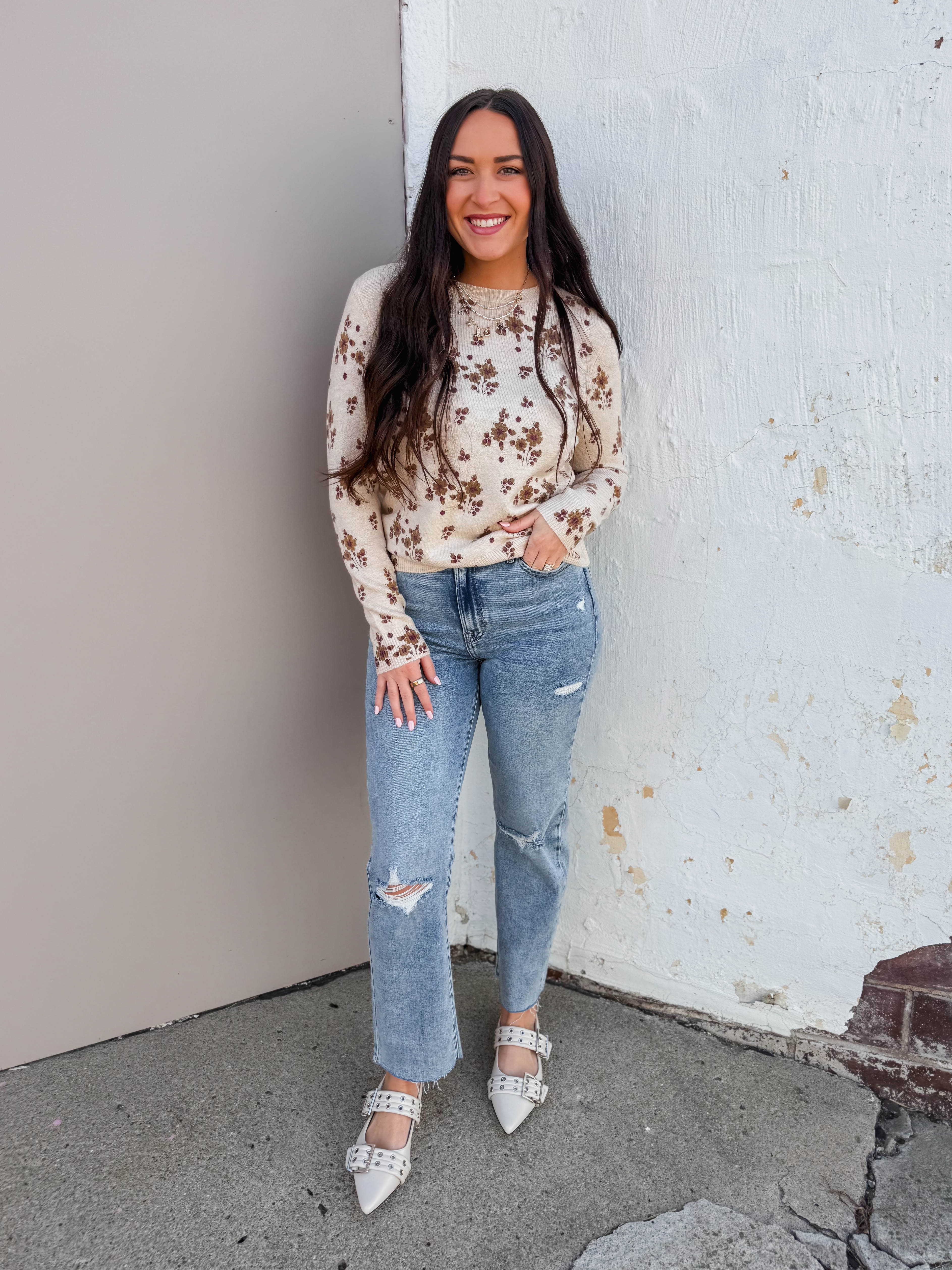 The Francis Floral Sweater brings a burst of spring to your wardrobe with its playful floral print and cozy crew neckline. Soft, lightweight, and perfect for long days from work to weekend fun.