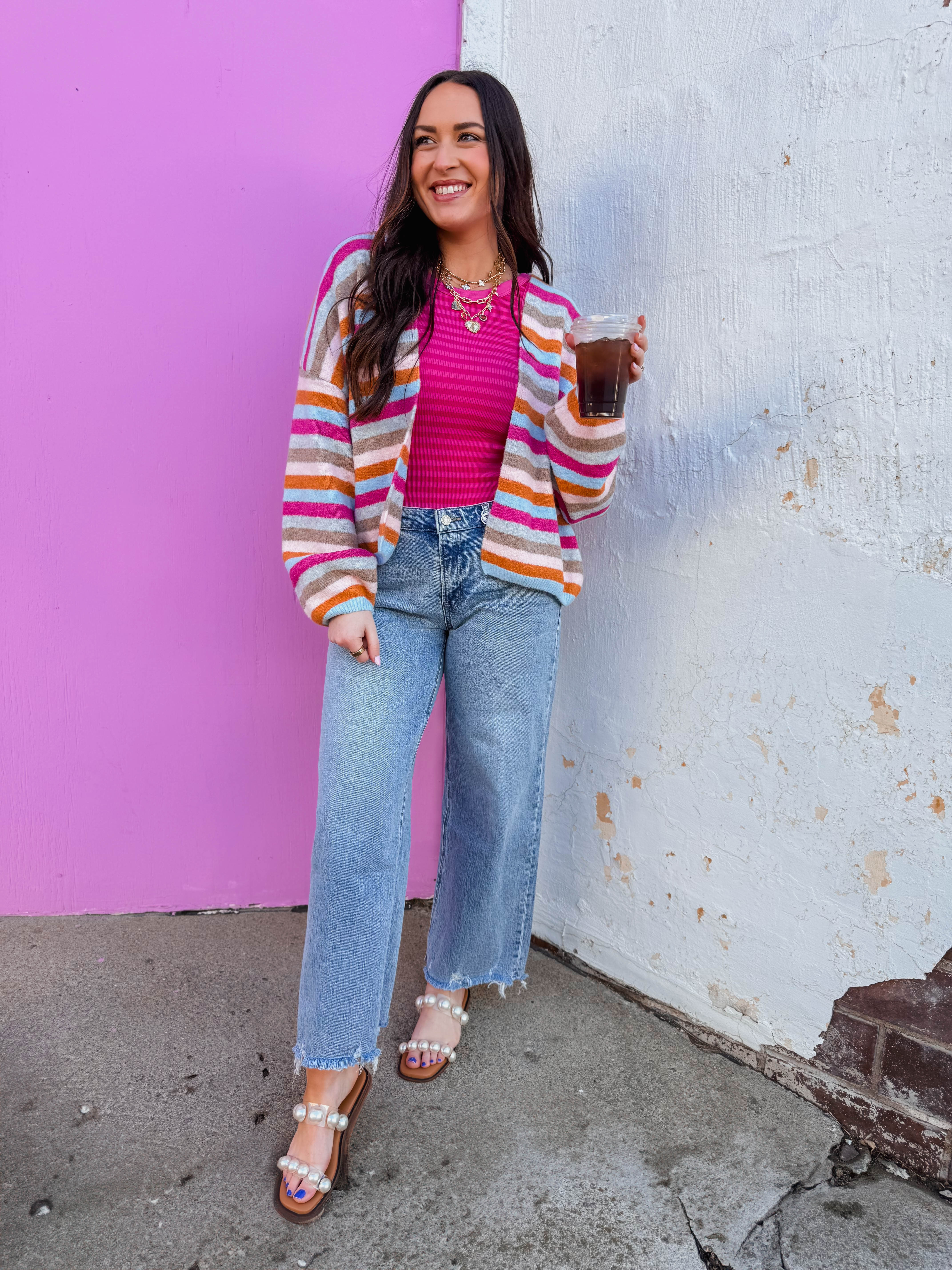 Effortless style meets comfort in these mid-rise wide leg jeans. The medium wash and frayed hem add a relaxed, modern edge that pairs perfectly with everything in your closet. A versatile everyday essential that works from casual outings to laid-back weekends.