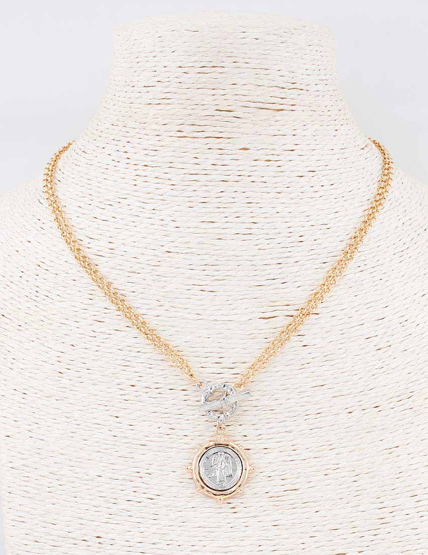 Gold Chain with Toggle and Silver and Gold Coin Charm Necklace 17"
