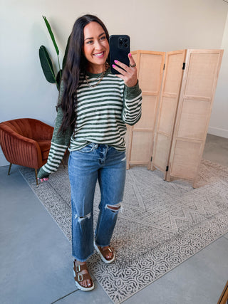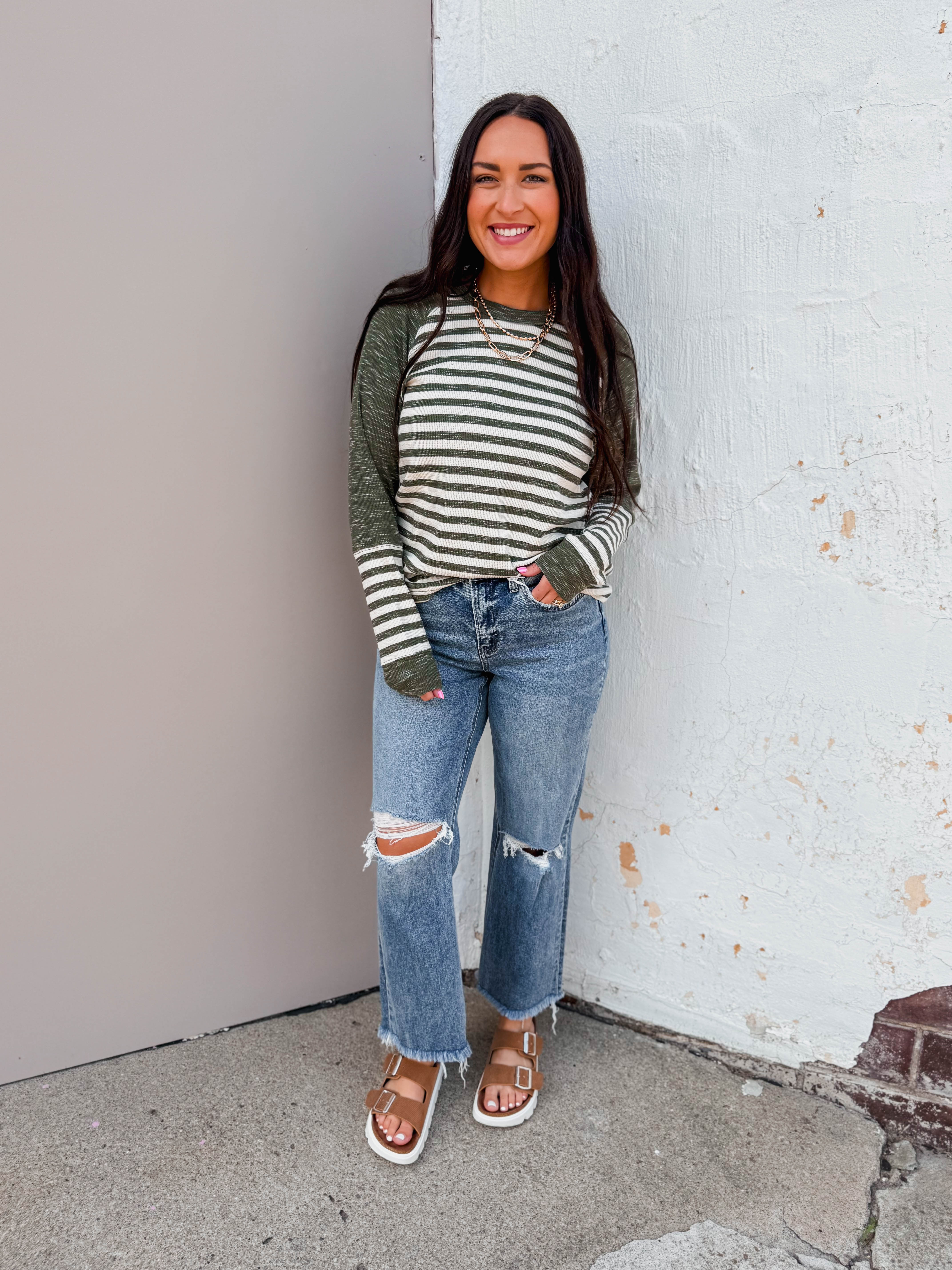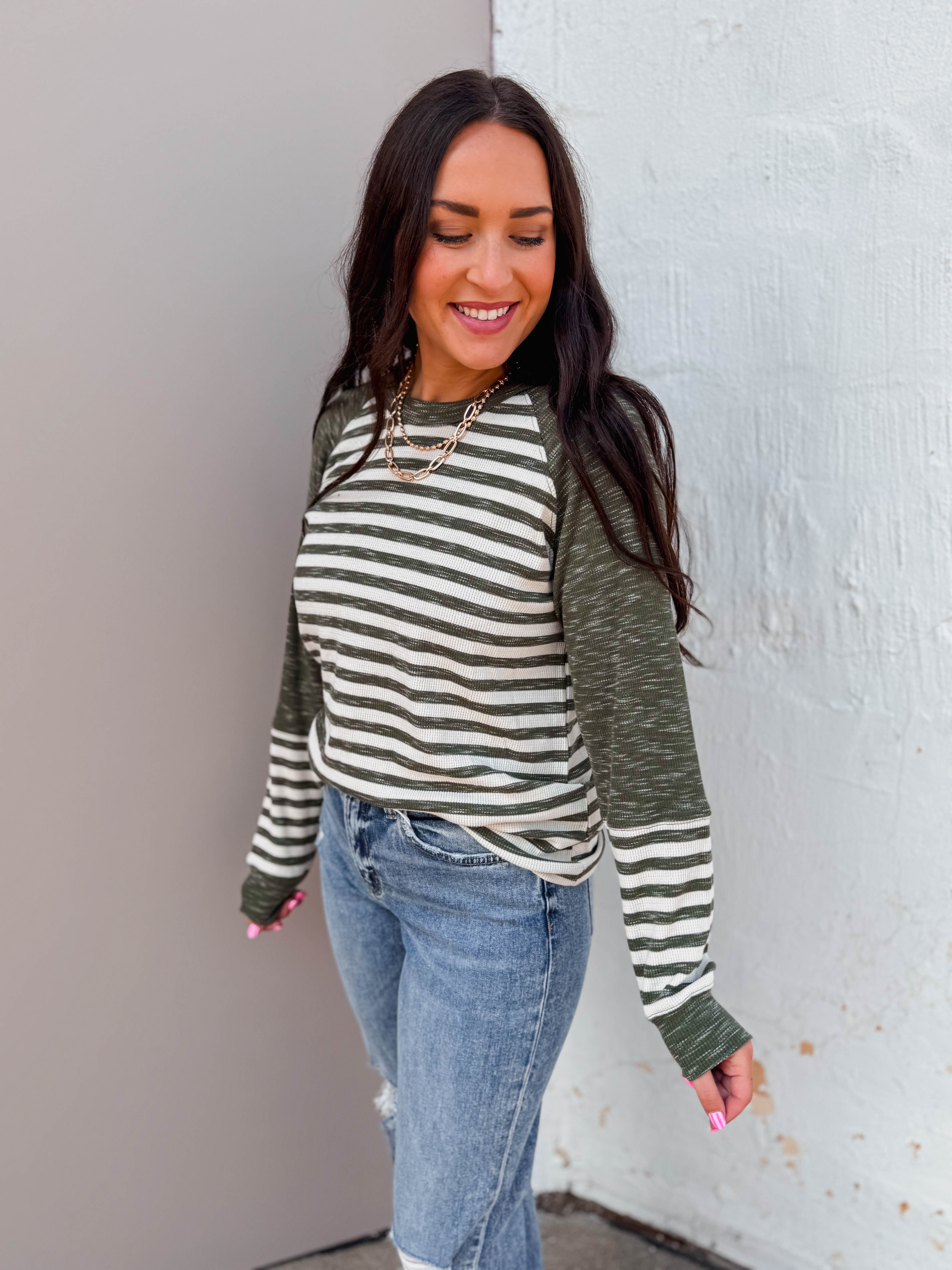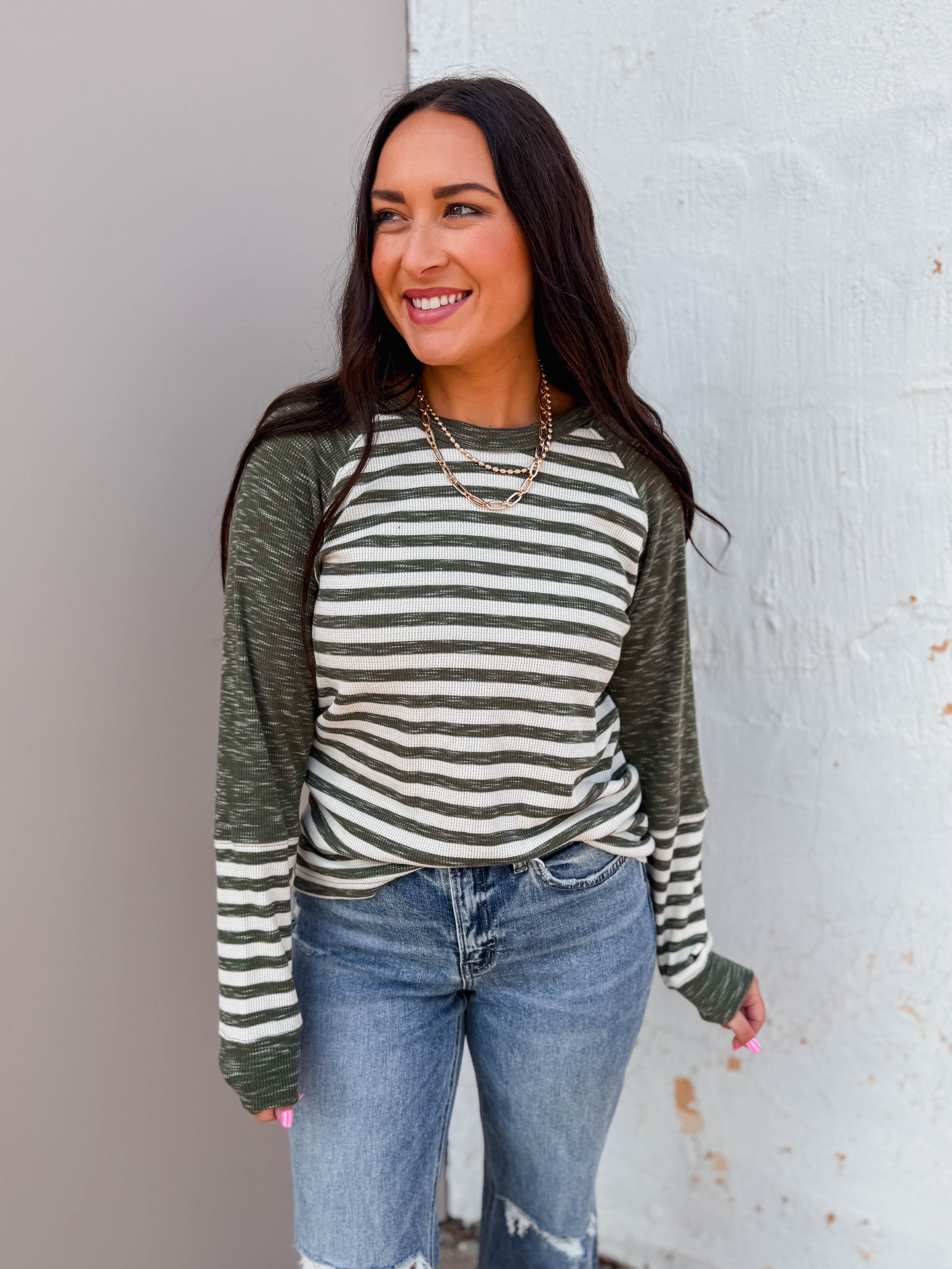 The Hazel Striped Top features a wide crew neckline and long dolman sleeves for a relaxed fit. Its slubbed fabric and color-blocked striped print add a fun twist, making it perfect to wear from work to weekend adventures.