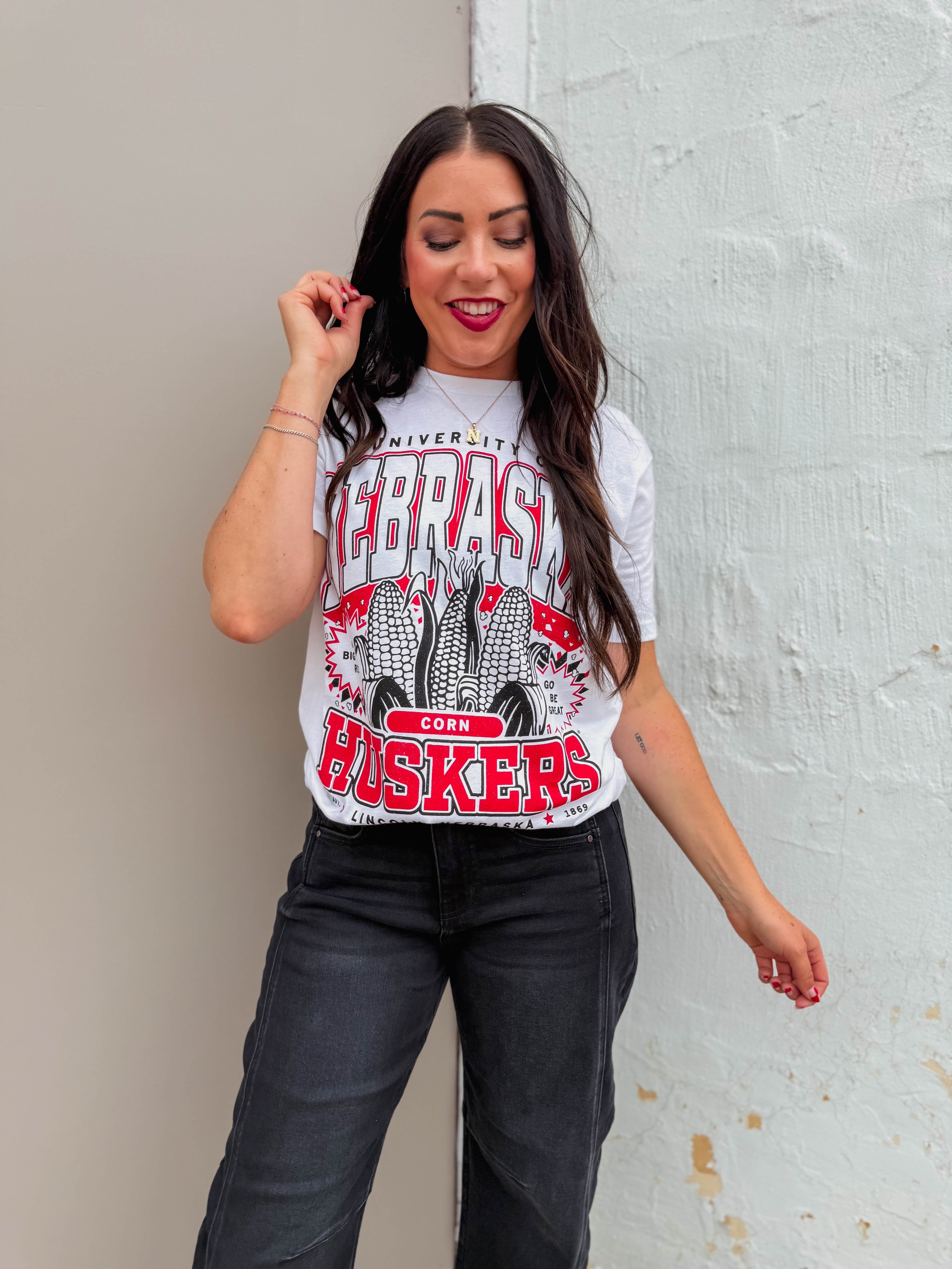 Show your Husker pride in this soft, lightweight tee featuring a bold Nebraska Corn graphic. With a relaxed fit and short sleeves, it’s perfect for game day fun and easy comfort all season long.