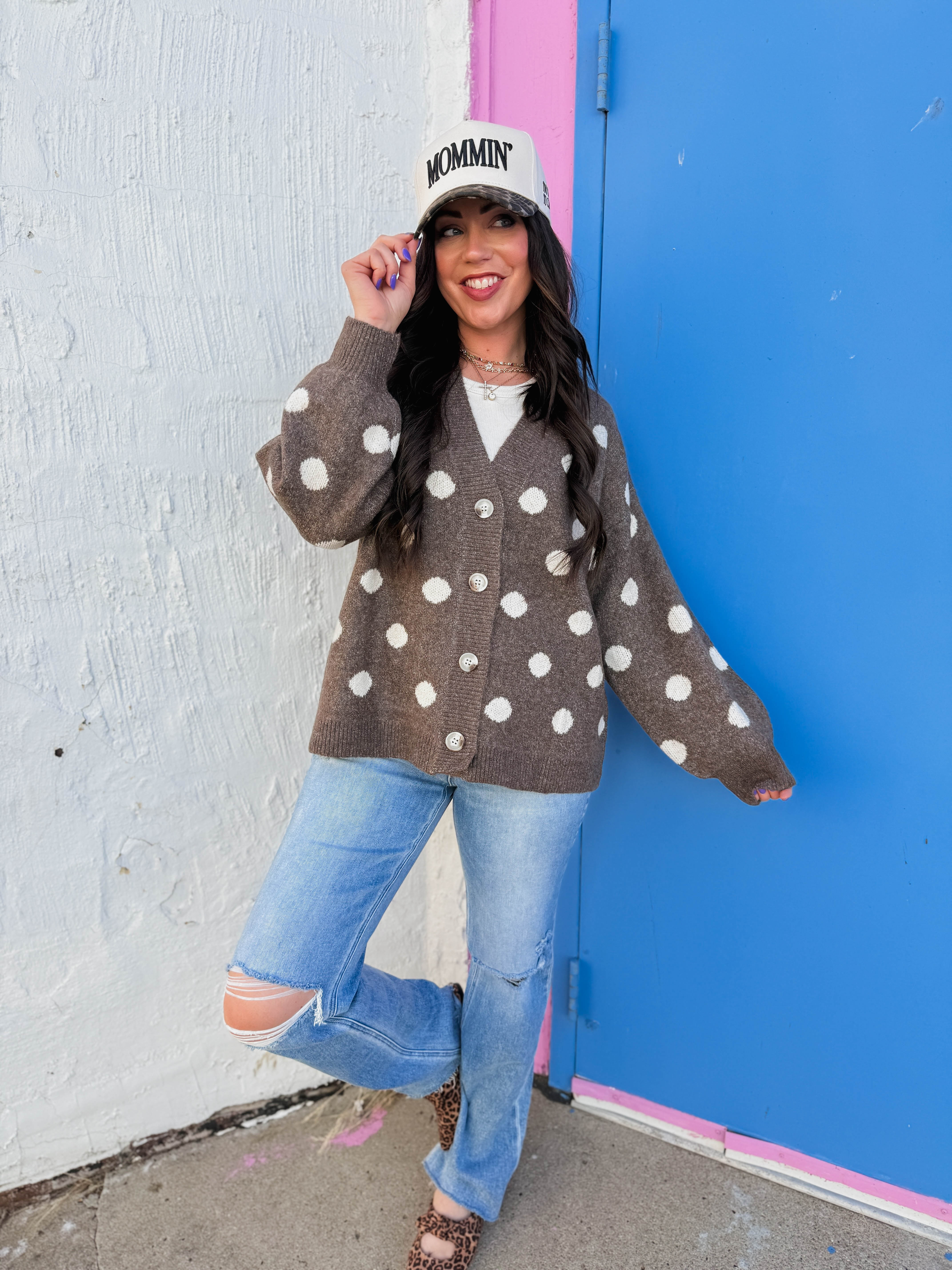Indy Polka Dot Cardigan-Dark Mocha