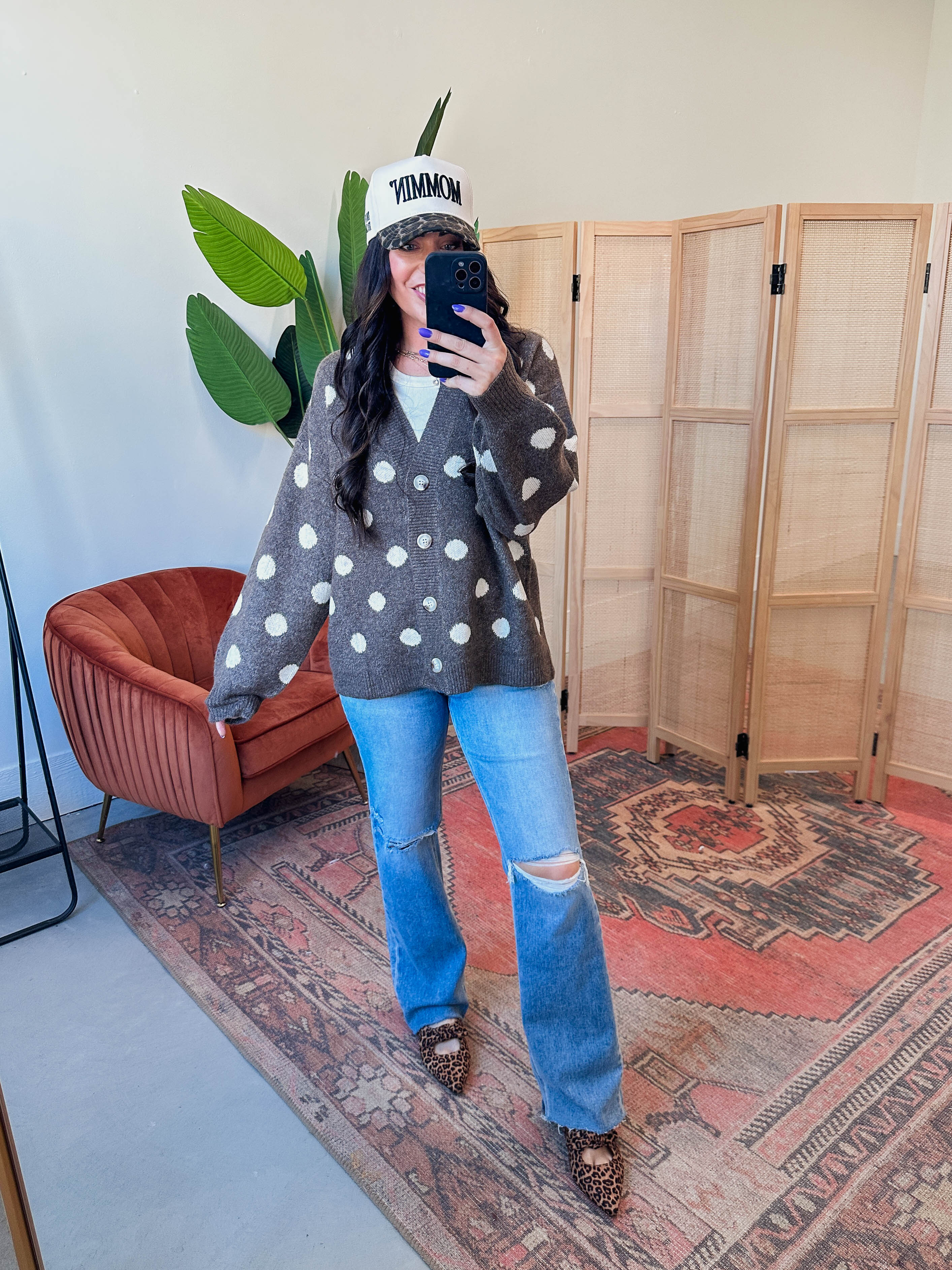 Stay cozy and cute with the Indy Polka Dot Cardigan! Featuring an oversized fit, puff long sleeves, and a playful button front, it’s perfect for breezy fall days—whether you're at work or out for the weekend. Add a trendy pop to your wardrobe with this fun polka dot staple.
