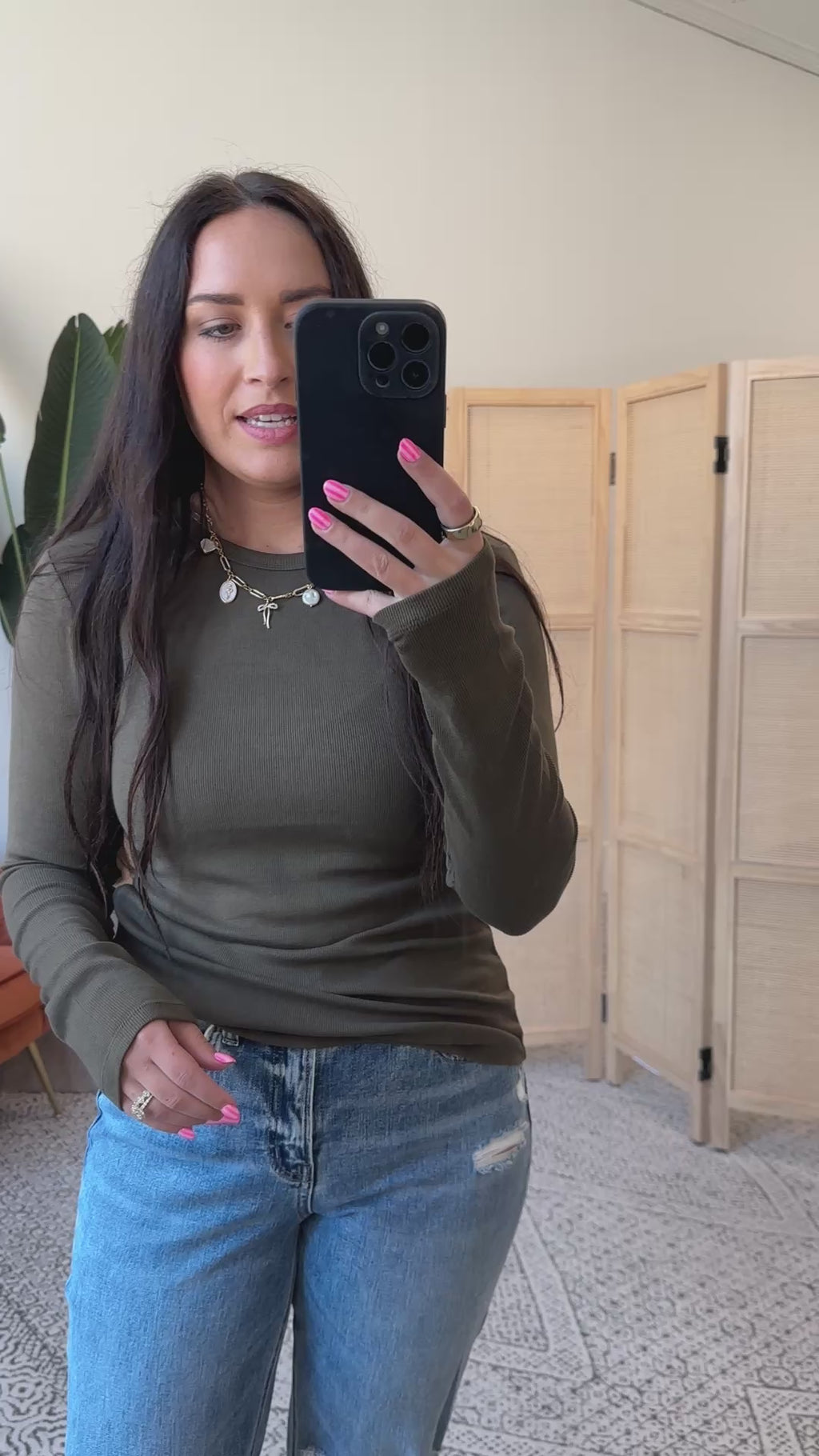 Lea Long Sleeve Top-Olive