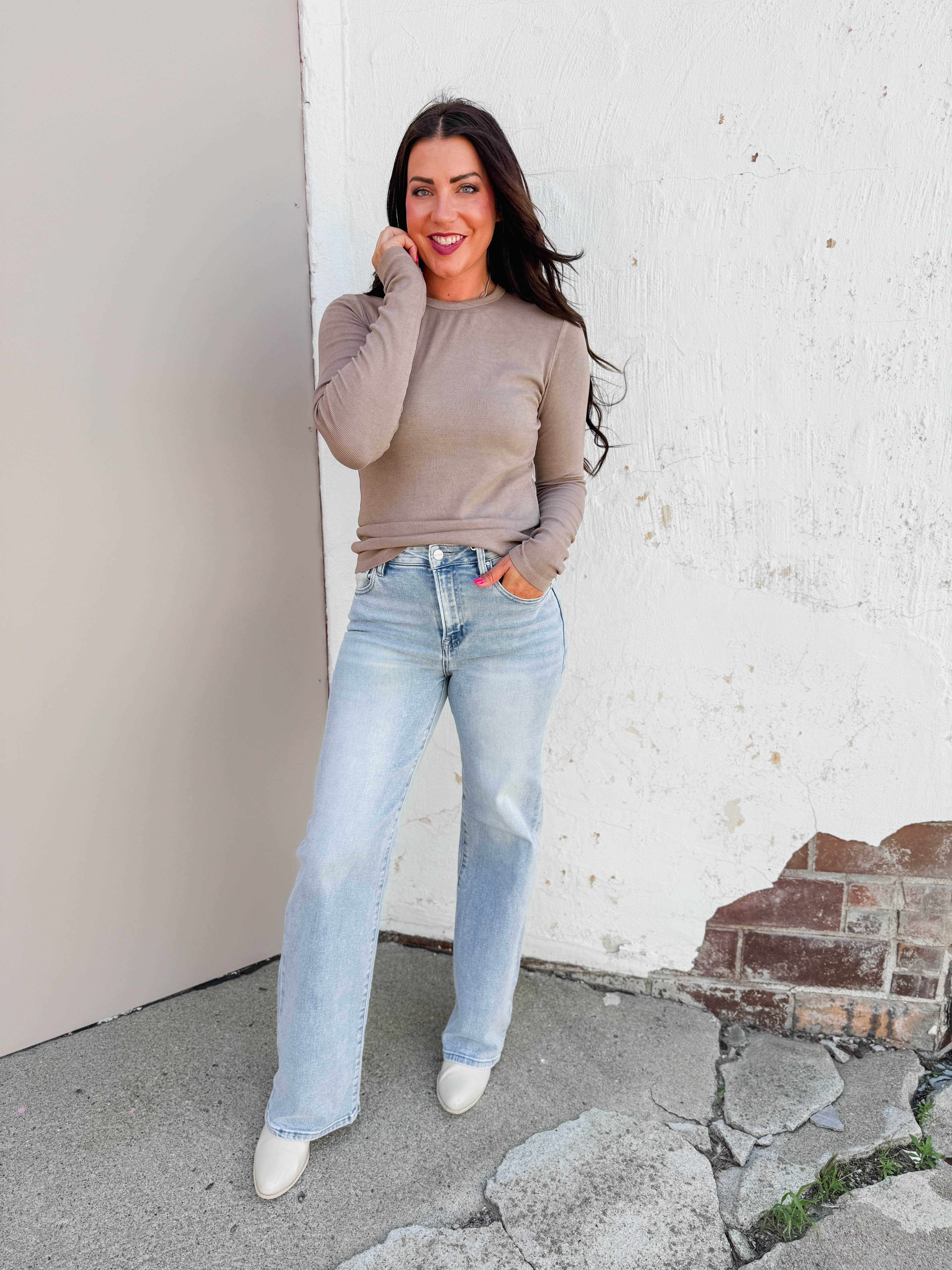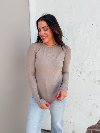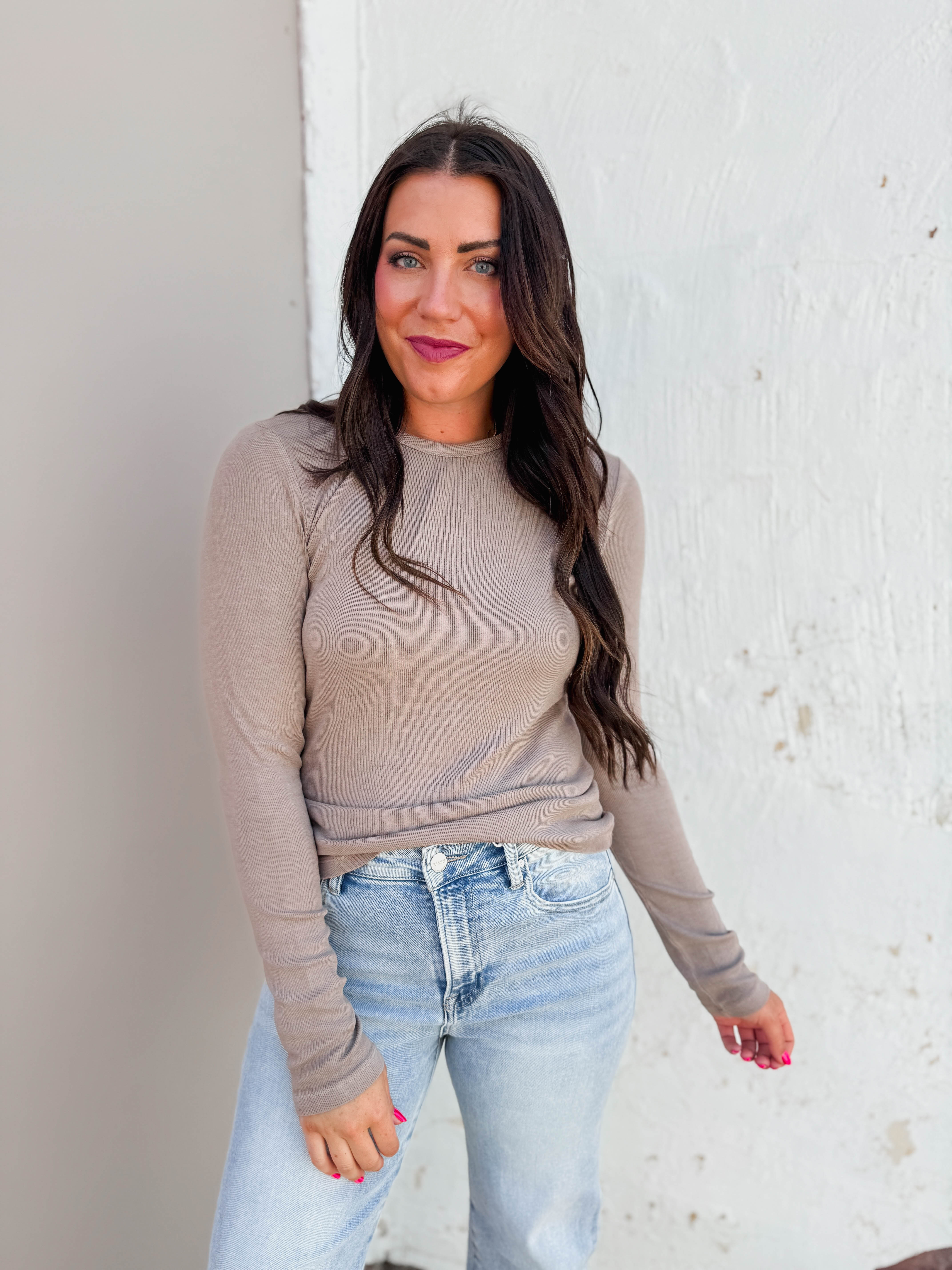 This Lea Long Sleeve Top in Taupe features a cozy crew neckline and fitted silhouette, perfect for layering from work to weekend. Garment dyed for a rich, unique color, its long sleeves make it a great fall staple you'll reach for again and again.