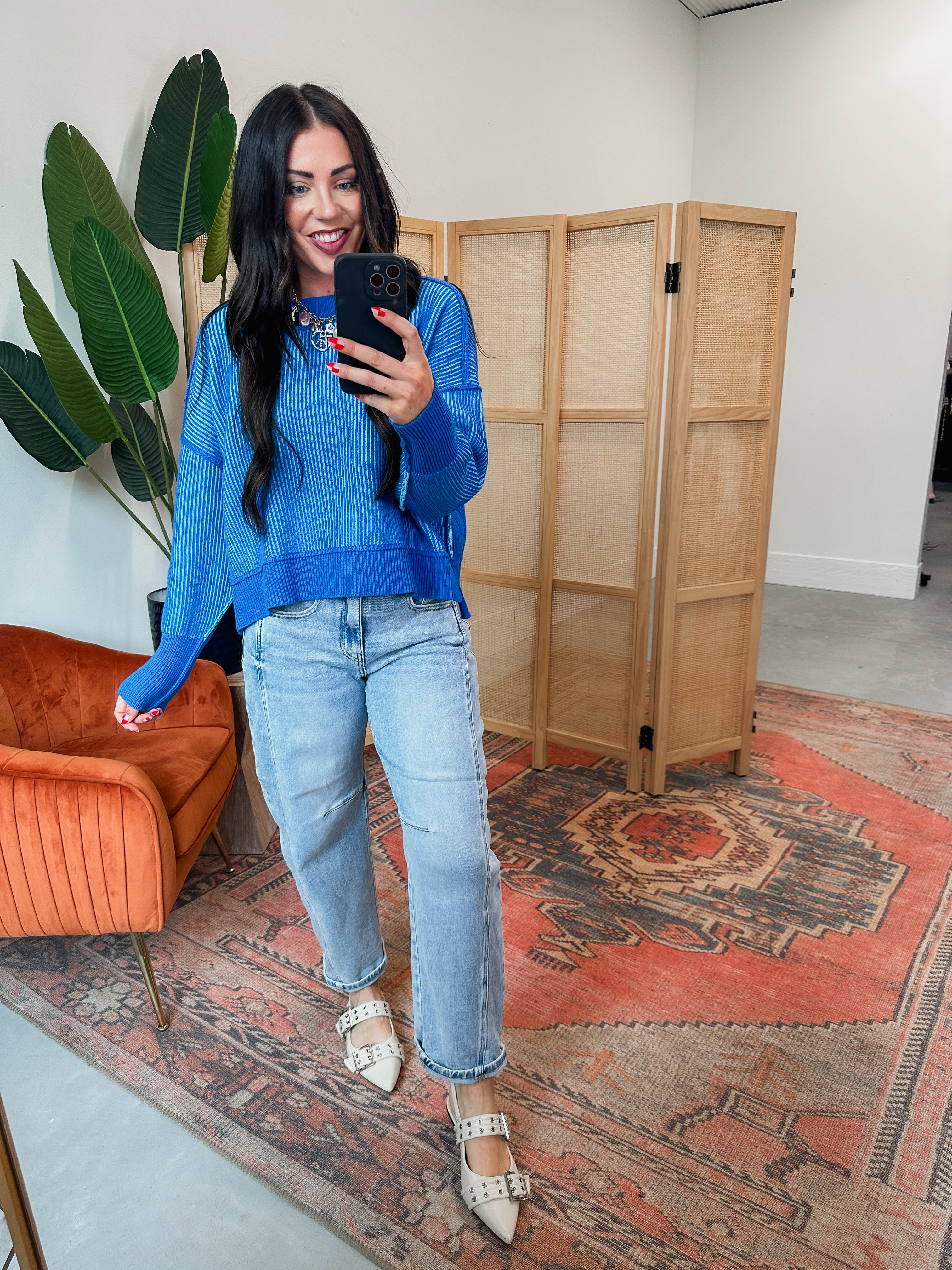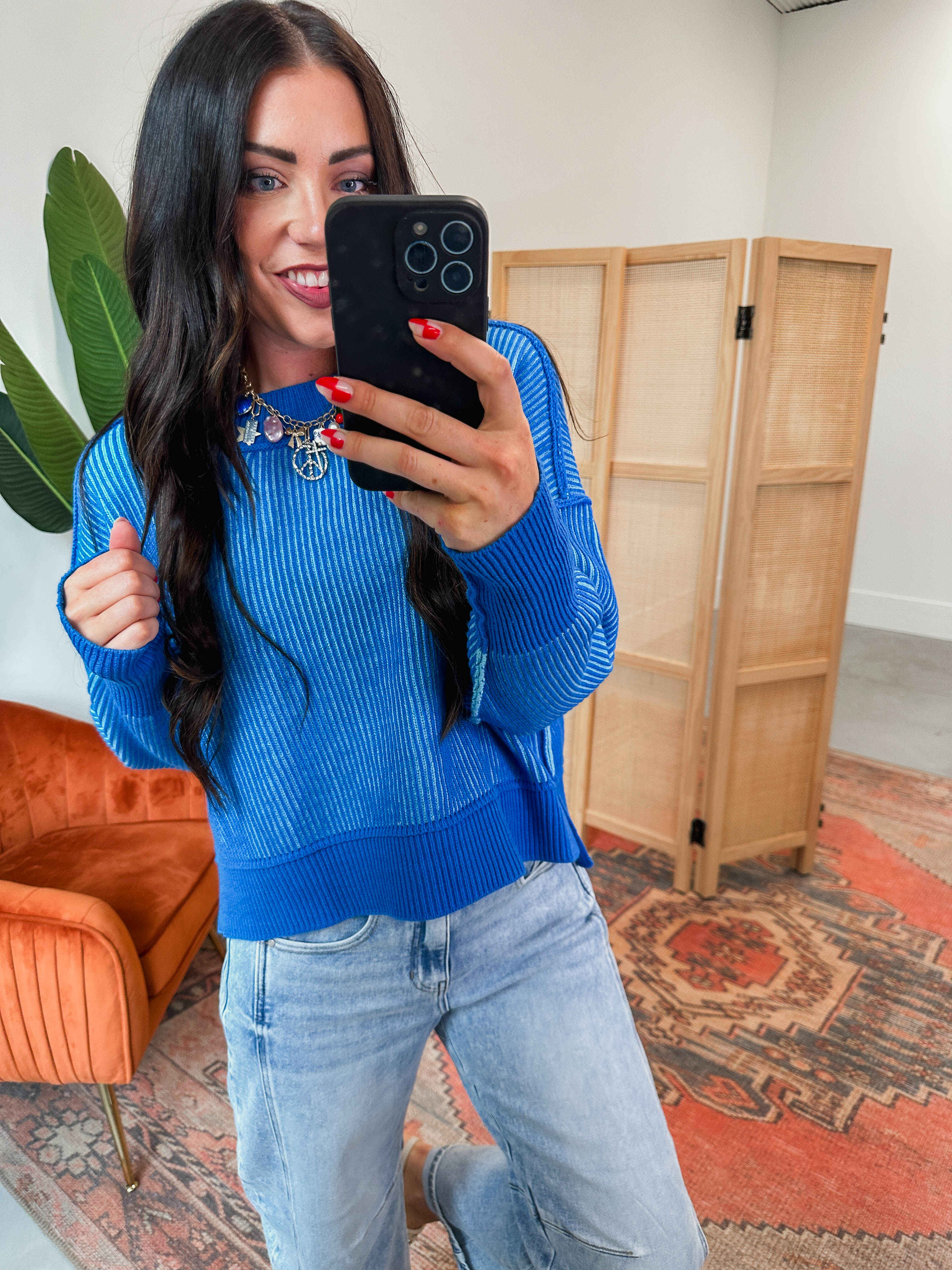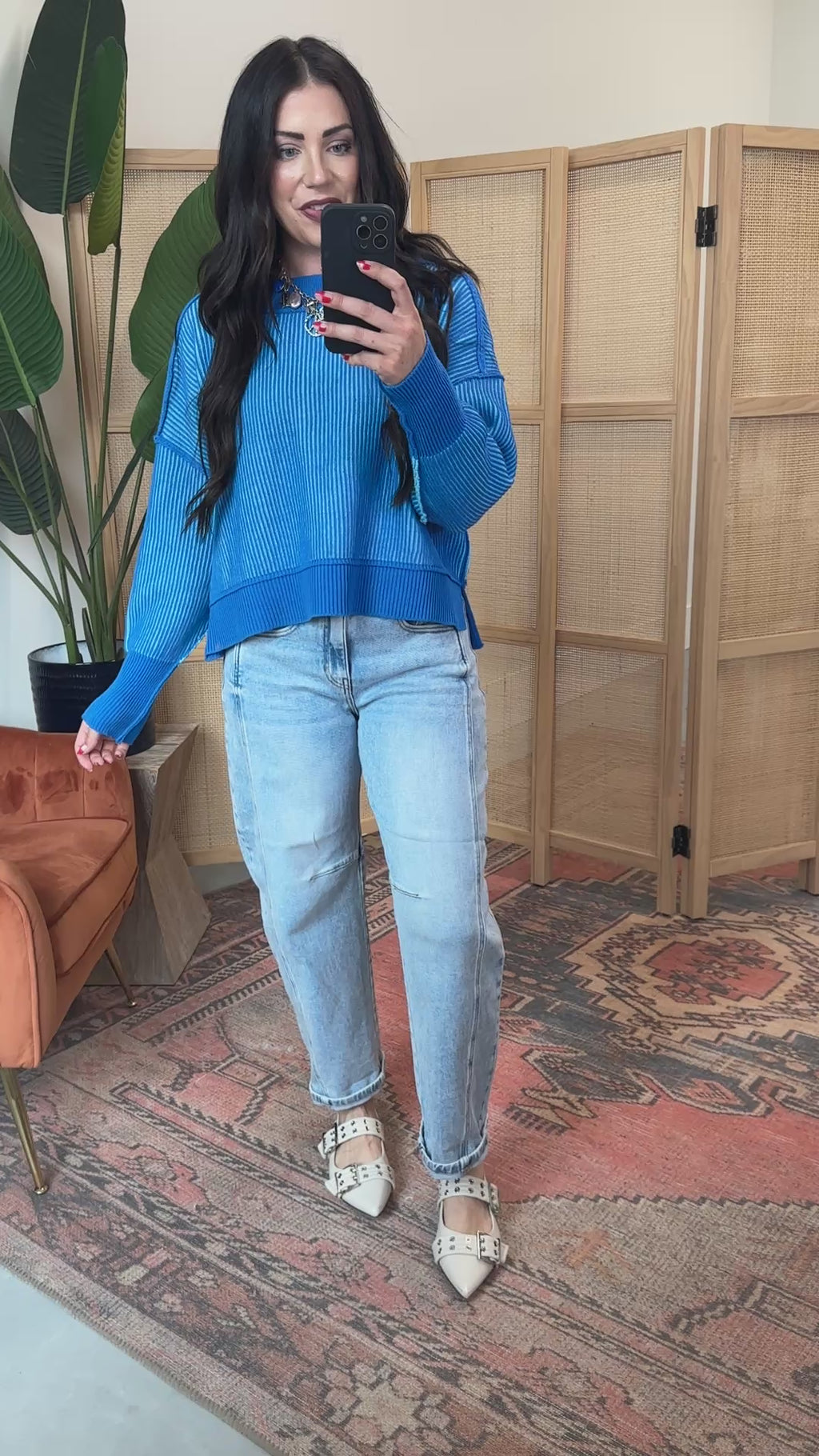 The Marlie Sweater is your go-to for a fun pop of color from work to weekend. Featuring a cozy crew neckline, long sleeves, and eye-catching two-tone style with exposed seams, it’s stylish and comfortable. Side slits and a hi-low hem add a playful twist to this easy pullover.