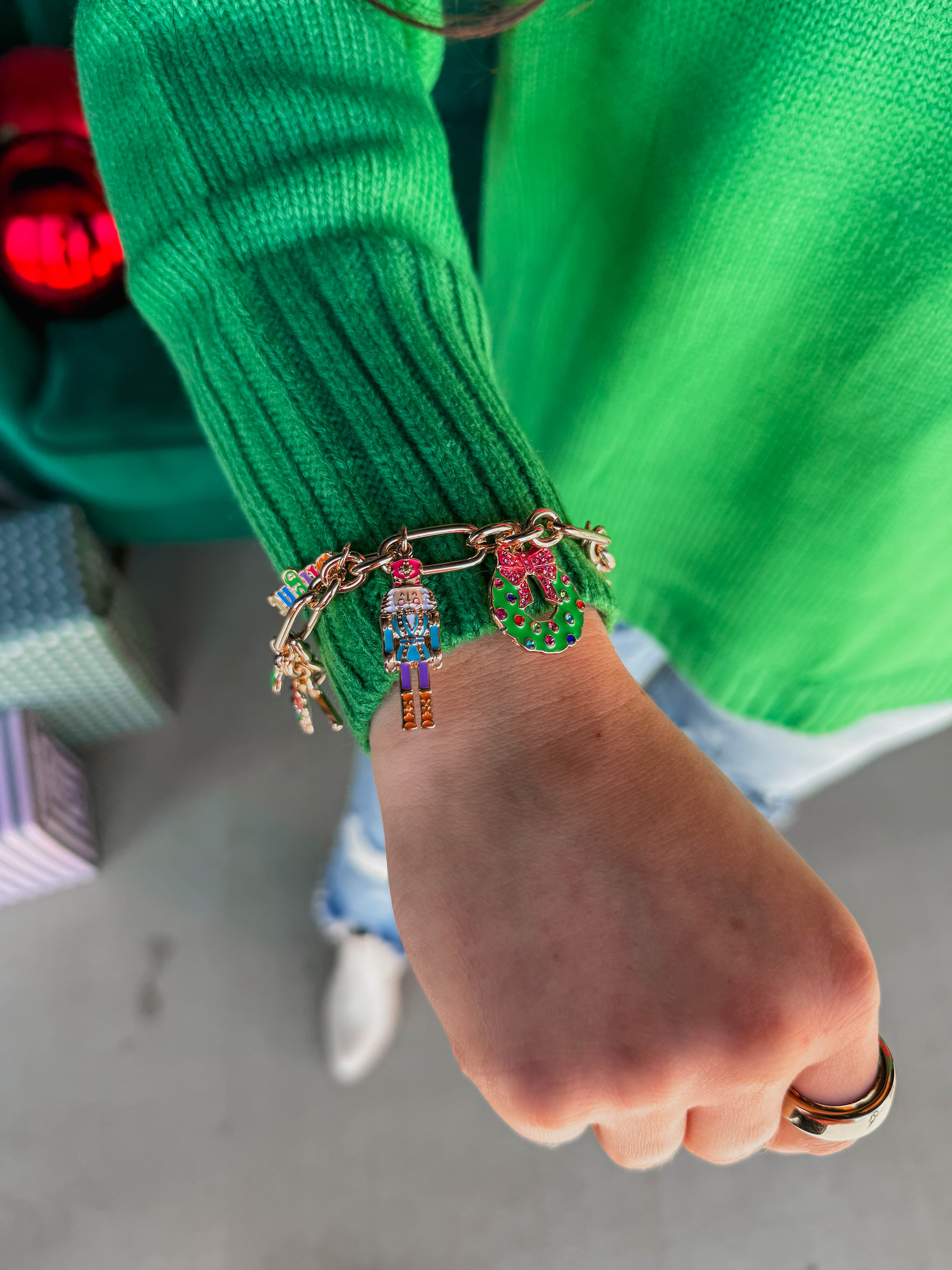 Packed with colorful enamel charms, this bracelet celebrates all things Christmas. Fun, festive, and full of personality. DETAILS: 18K Triple Gold Plated 7.5" Length