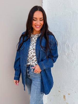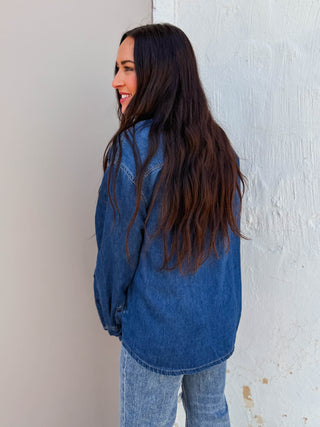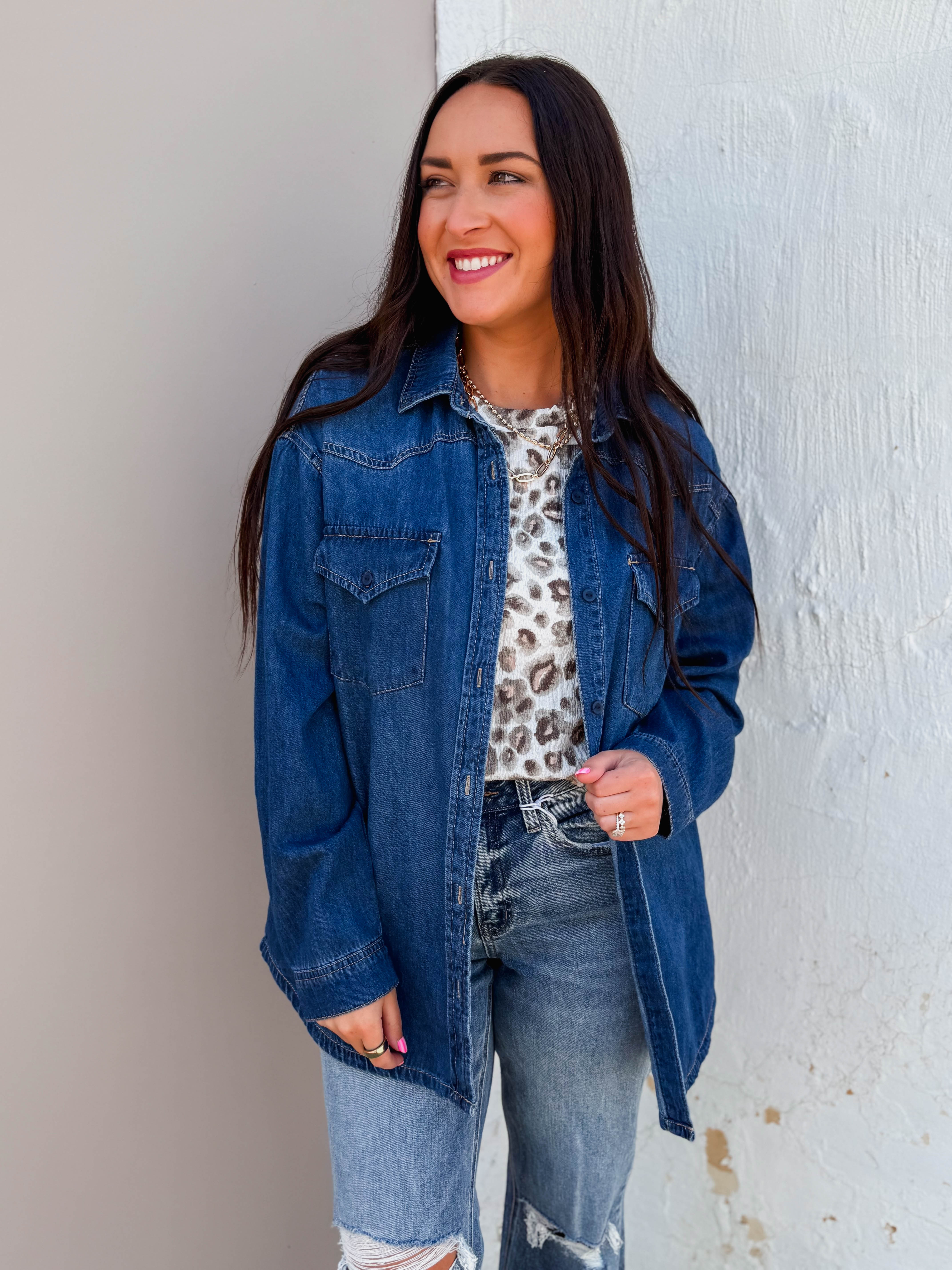 The Miles Denim Jacket brings a cool, subtle western vibe with its collared neckline and button-front closure. Featuring long sleeves, dual chest pockets, and a relaxed fit with a rounded hem, it’s perfect for year-round wear. Easygoing style meets everyday comfort!