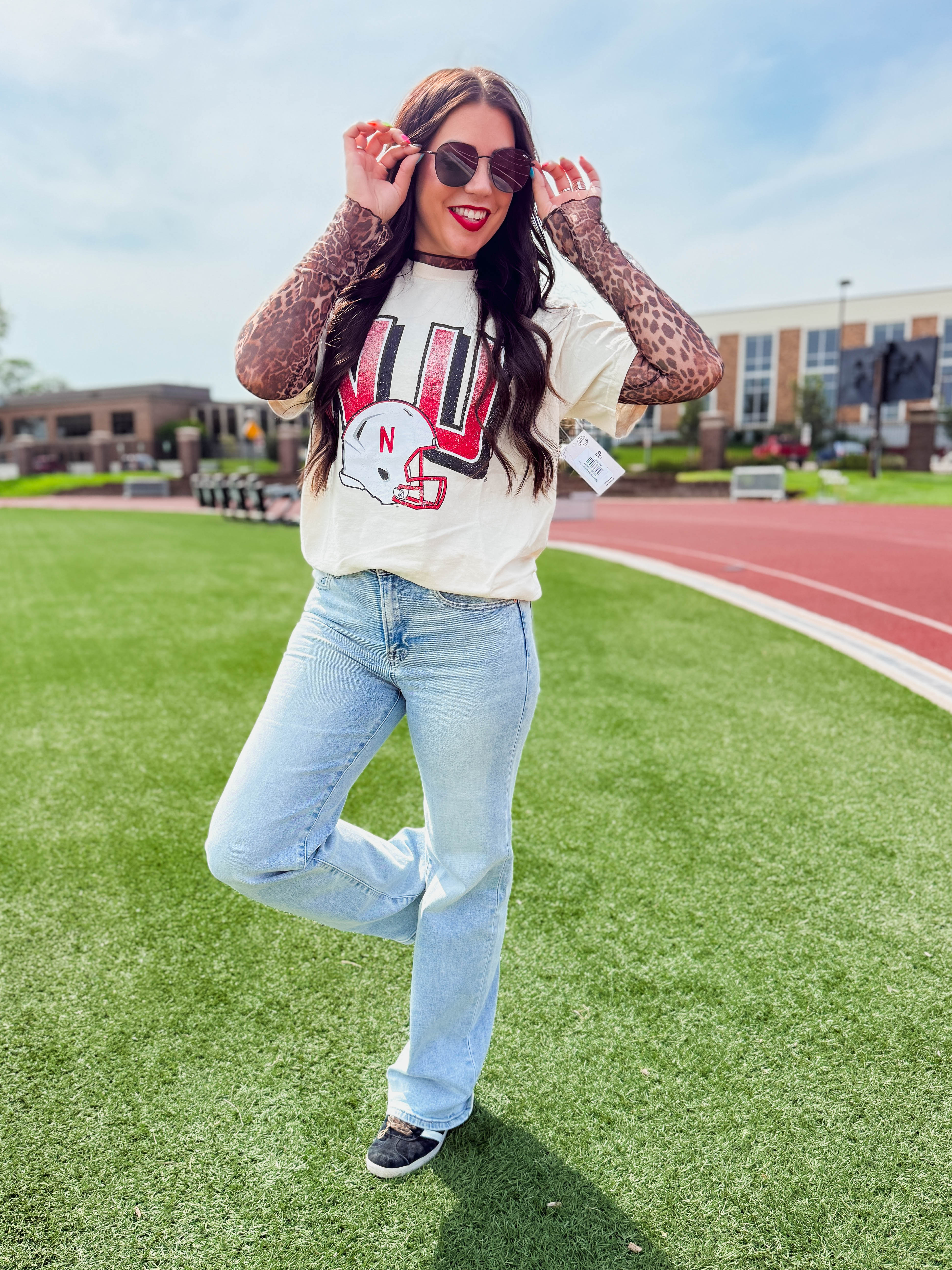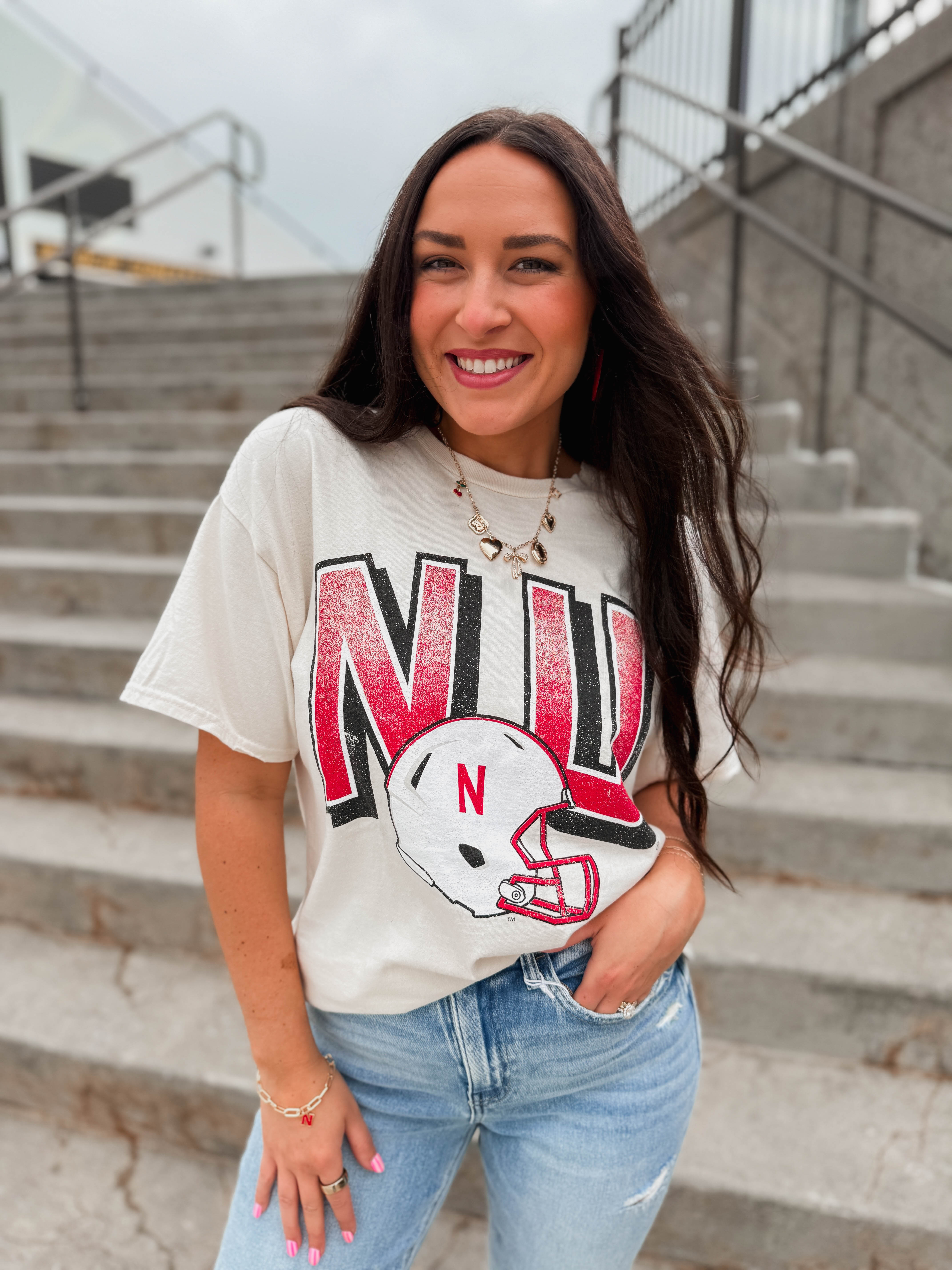 Get ready to cheer on the Cornhuskers in style with our Nebraska Helmet Tee! Featuring a vintage-style NU helmet graphic, this tee is the perfect way to show off your team pride. With a relaxed fit, crew neckline, and short sleeves, it's the ultimate in comfort and style. Go Big Red!