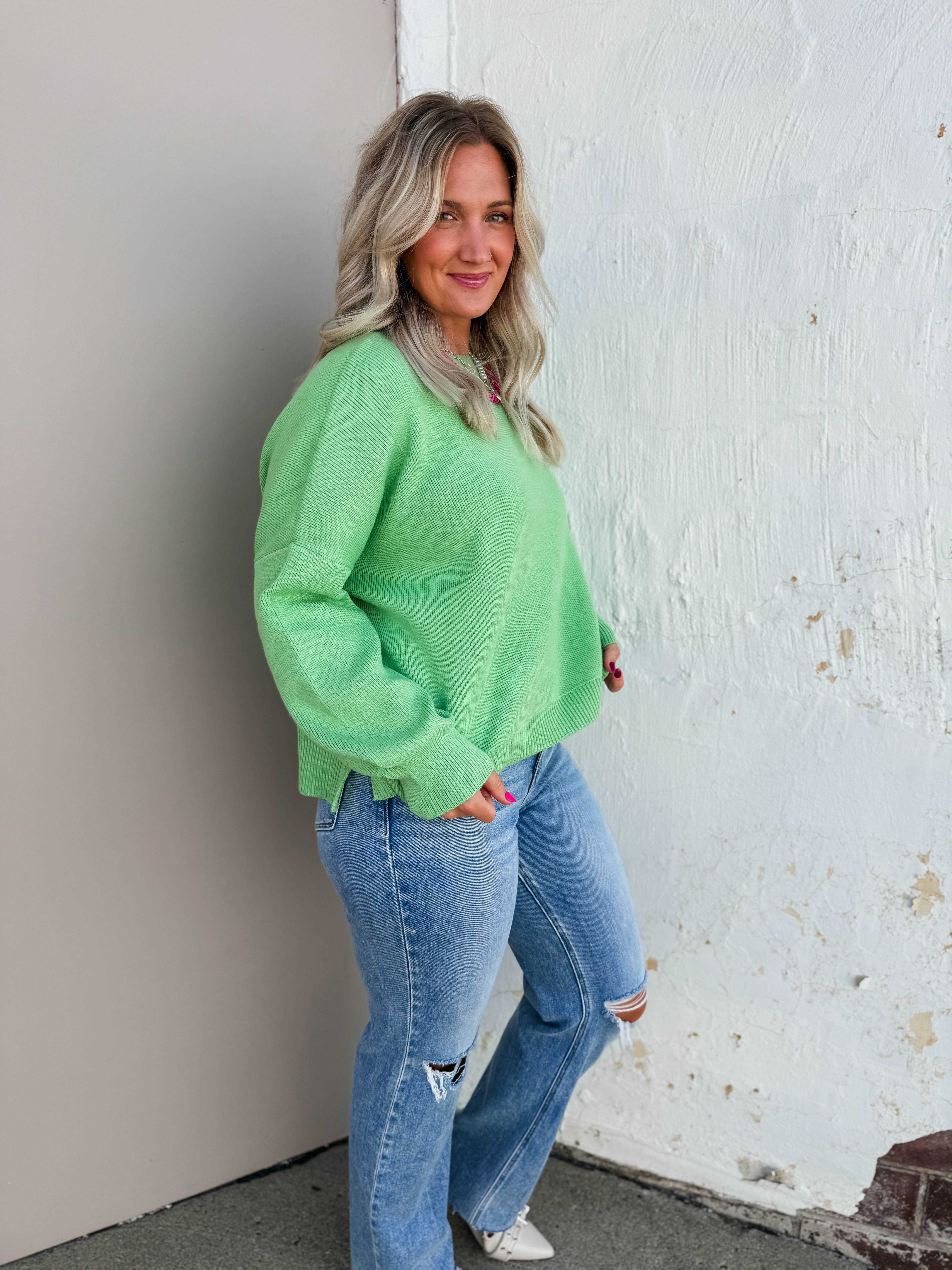 Cozy up in the Nellie Sweater in Honeydew! With its oversized fit, drop shoulders, and ribbed hems, this crew neck pullover is your go-to for work or weekend fun. Long sleeves keep you warm while staying effortlessly stylish. A perfect staple for any wardrobe!