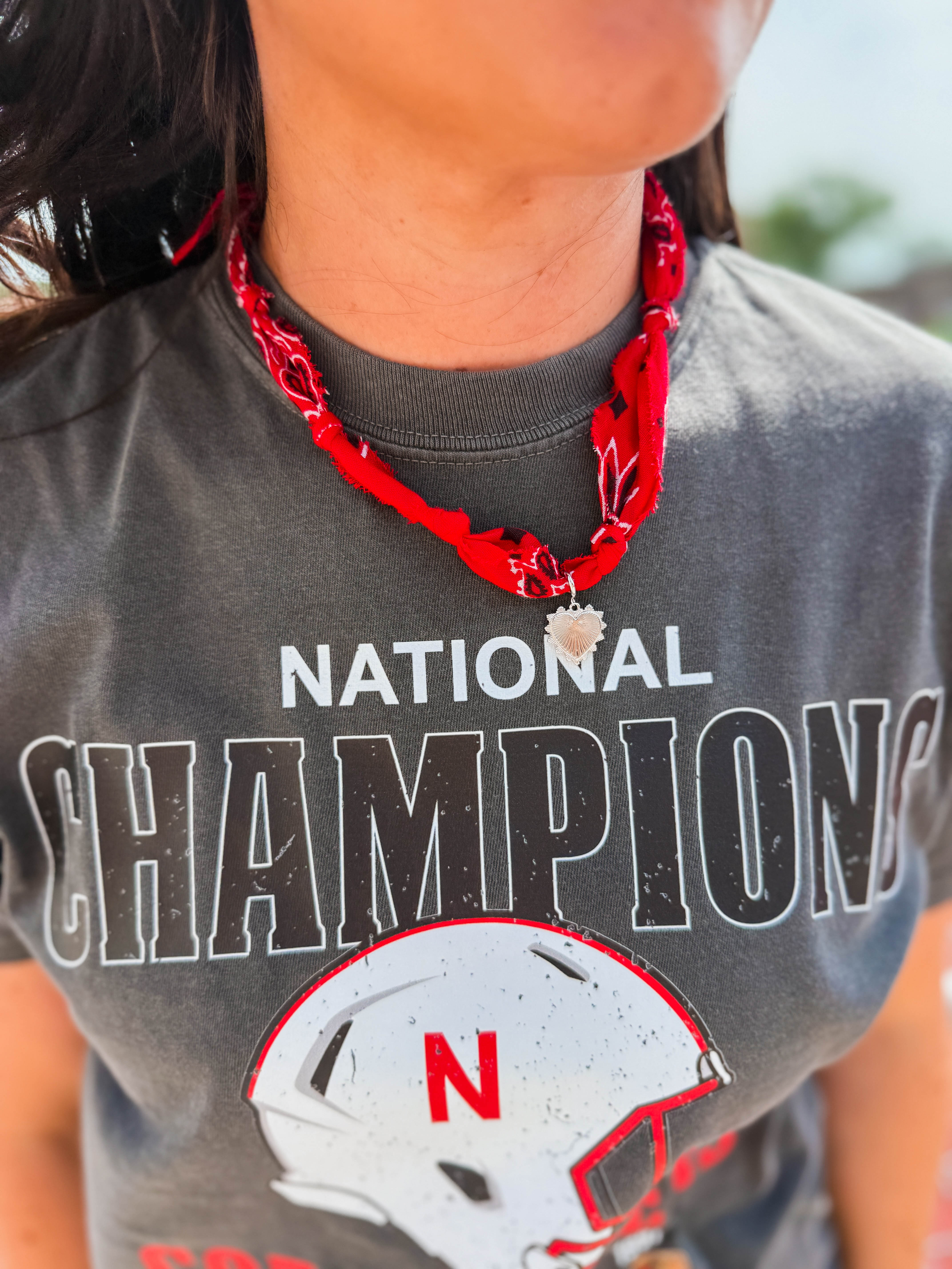 Nickel & Suede - Red Bandana Necklace-Silver Sunburst Heart Charm