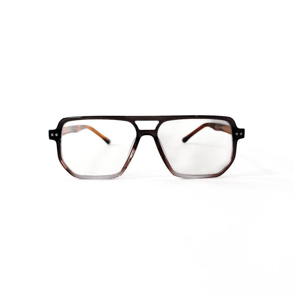 Oversized Square Aviator Blue Light Glasses-Brown/Clear