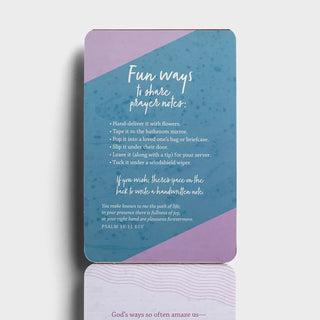 - Each note includes a prayer, Scripture, inspirational quote, and space on the back for a handwritten note