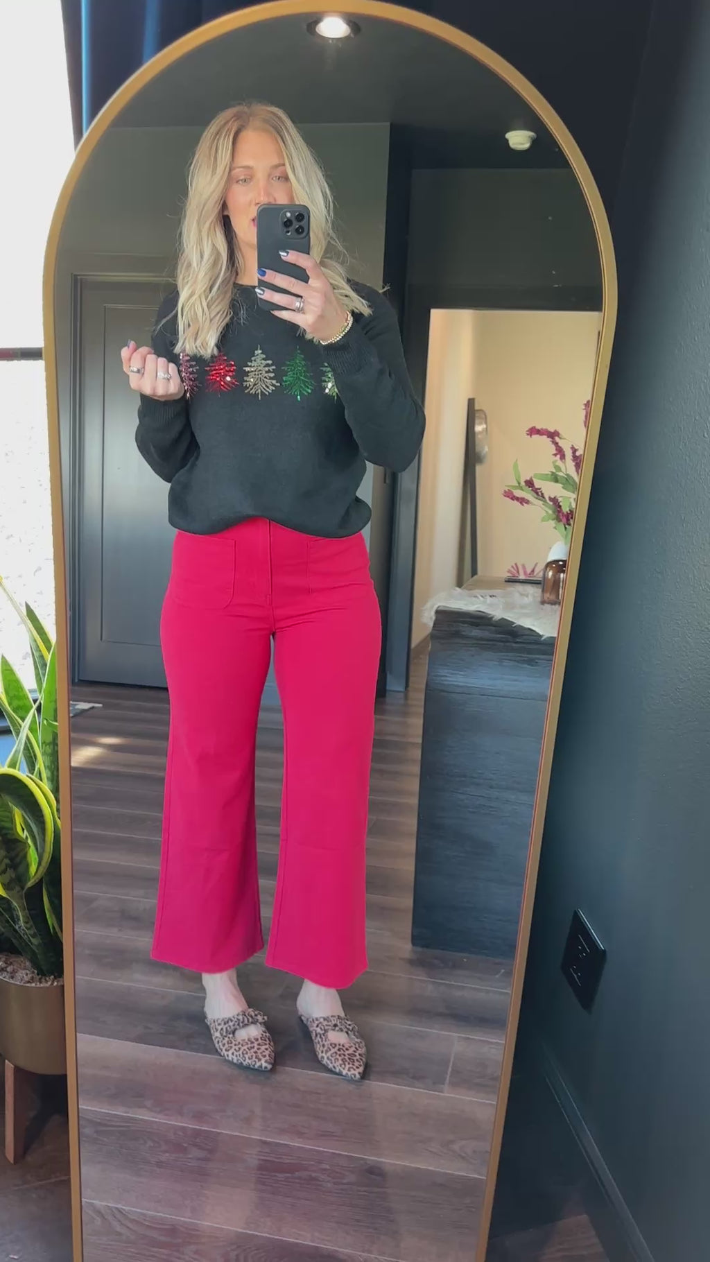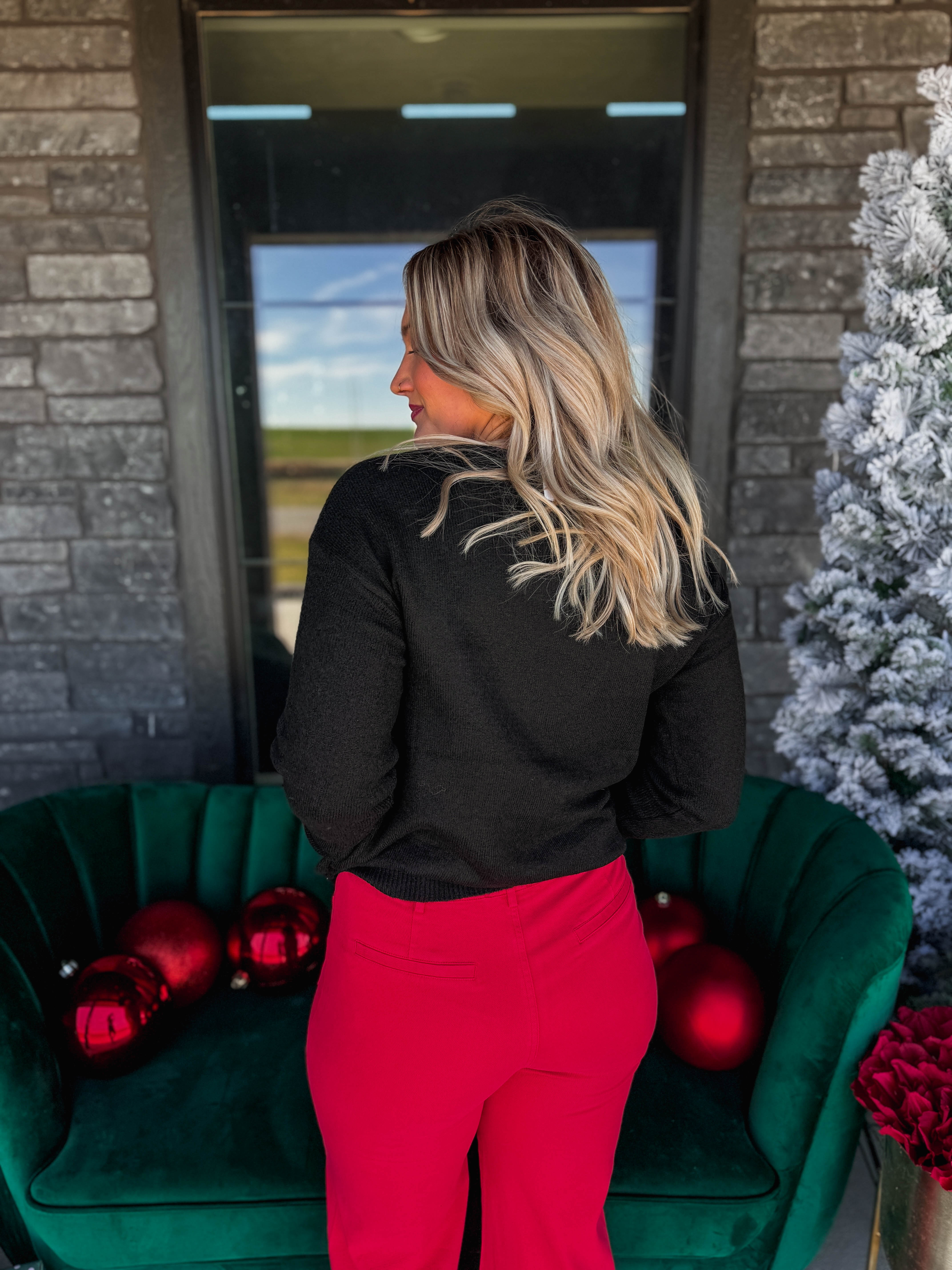 This pullover sweater features a cozy crew neckline and long sleeves, perfect for chilly holiday days. Adorned with shimmering sequin Christmas trees, it adds a fun, festive sparkle to any outfit without being over the top. A cute and subtle way to celebrate the season in style!