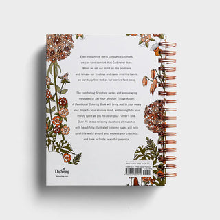 Set Your Mind on Things Above: A Devotional Coloring Book provides a wonderful way to turn your thoughts from worry and fear, and toward God's hope and peace. Matching over 77 stress-relieving devotions with beautifully illustrated adult coloring pages with floral and pattern designs. This spiral bound coloring book is the perfect outlet to creatively express your faith. Just grab your favorite artistic media, crayons, colored pencils, marker pens or paint and escape into the quiet peace of the presence of God.