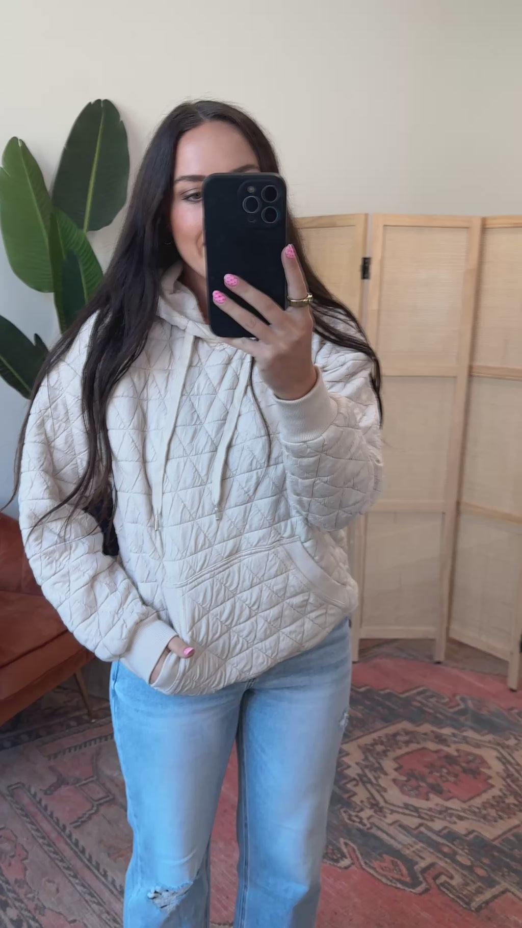 Stay cozy and cute in the Tori Quilted Hoodie in Cream! With a drawstring neck, long sleeves, and a warm quilted knit, it’s perfect for chilly fall and winter days. Plus, the kangaroo pocket adds a fun, practical touch for keeping hands toasty.
