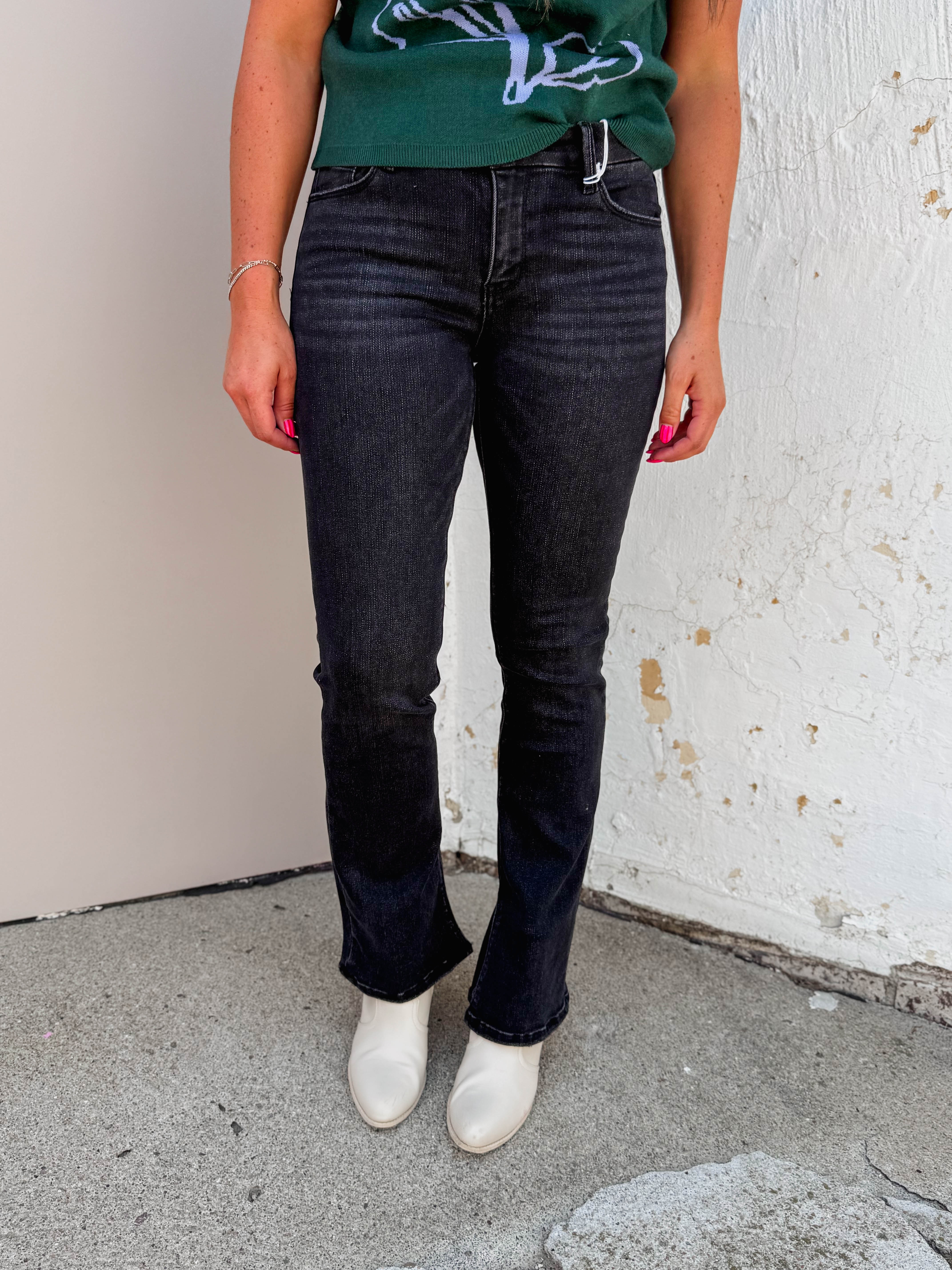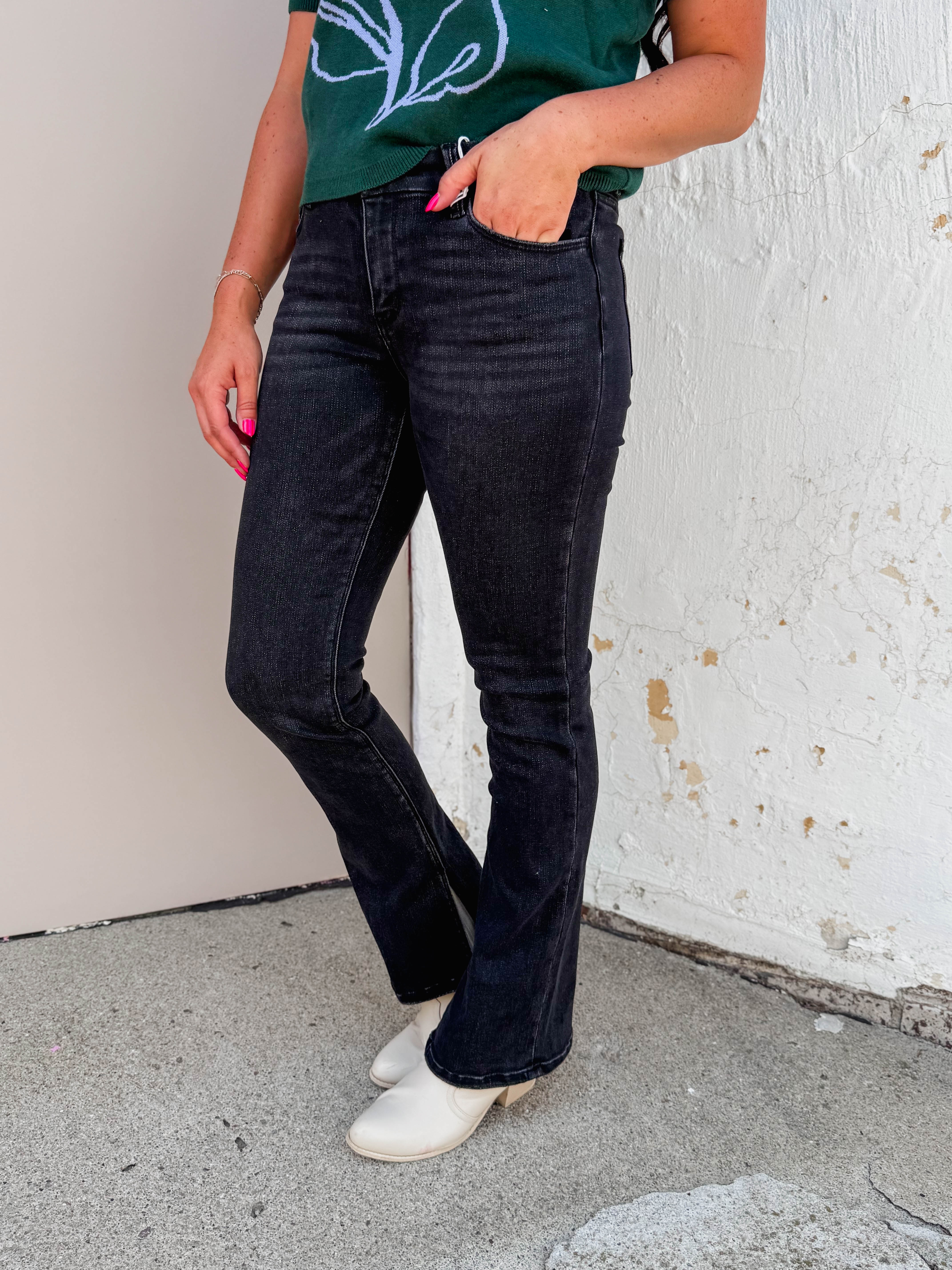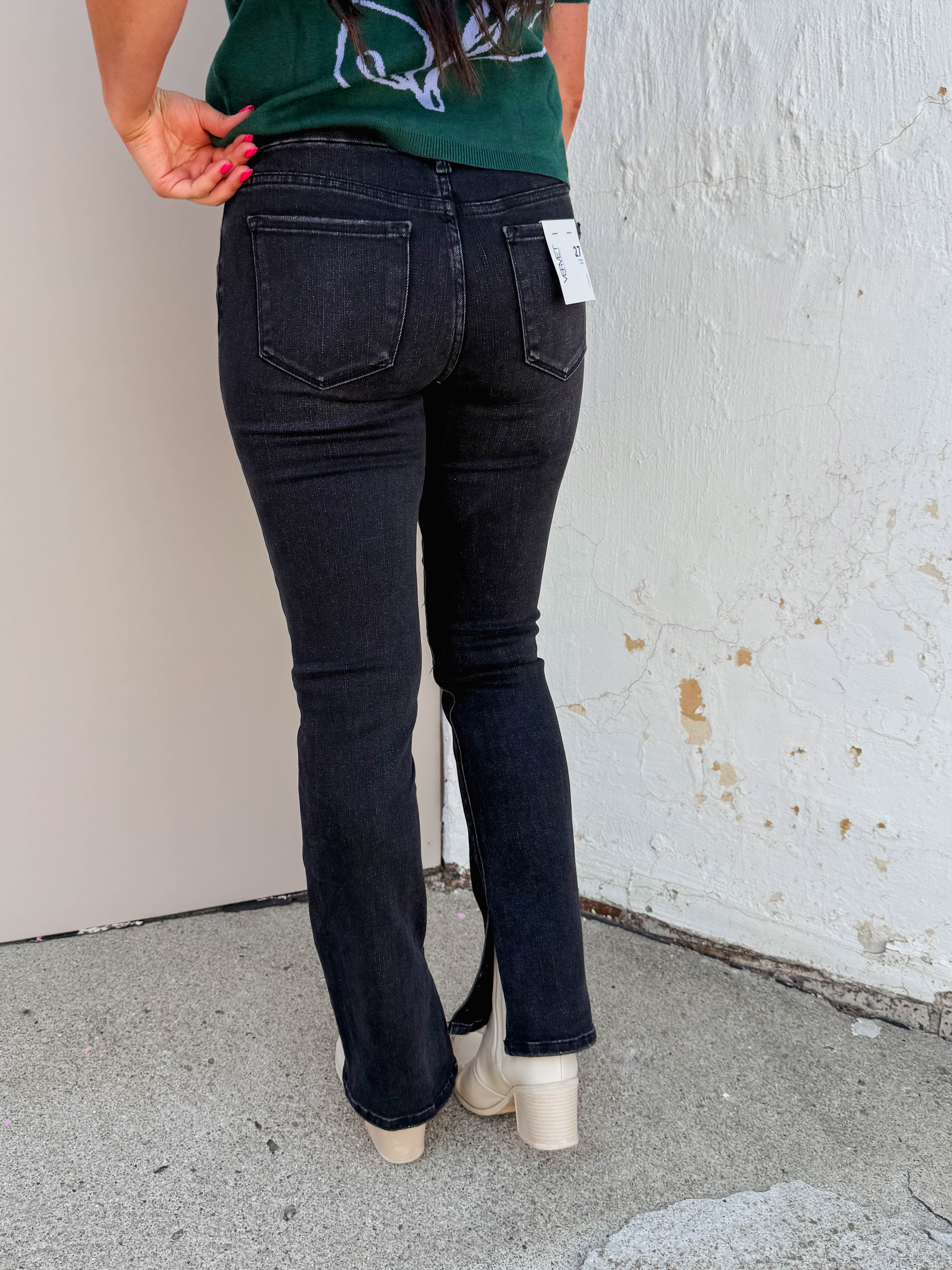 Step out in style with Vervet’s Winona Mid Rise Bootcut Denim. These comfy stretch jeans feature a flattering mid-rise waist and a trendy inside slit hem, perfect for taking you from work to weekend with ease. Full-length and effortlessly cool!